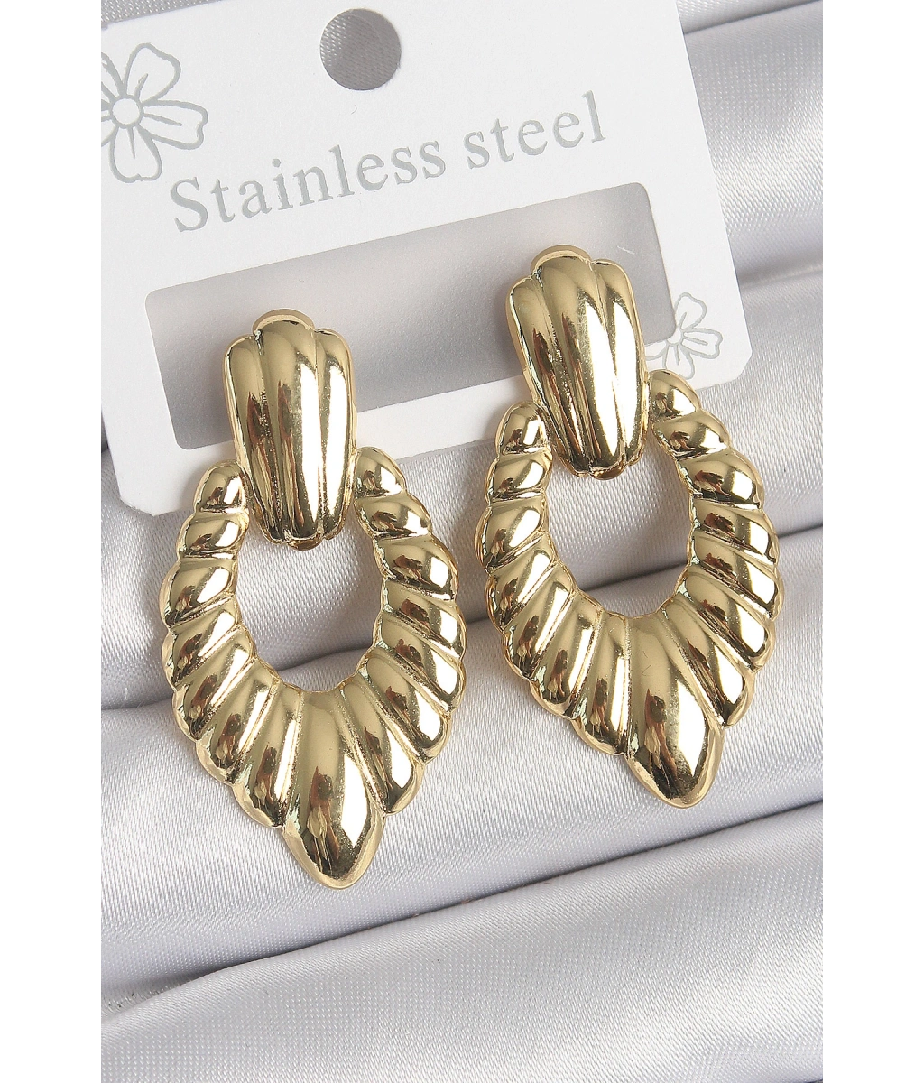 Shoecide 316 Çelik Gold Renk İşlemeli Motiif Model Kadın Küpe