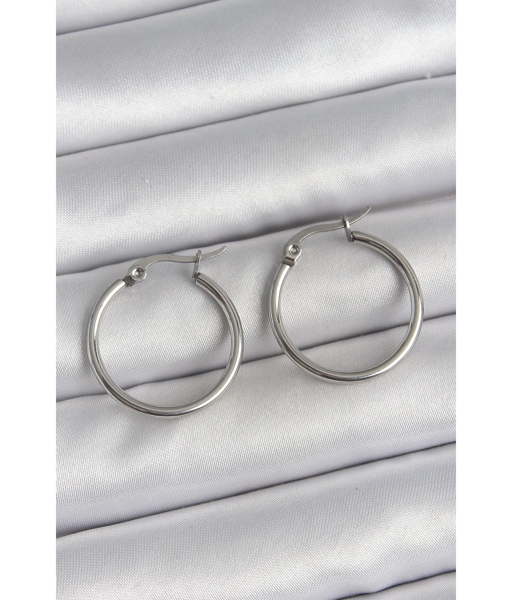 Shoecide 316 Çelik Gümüş Renk 22 Mm Halka Model Kadın Küpe