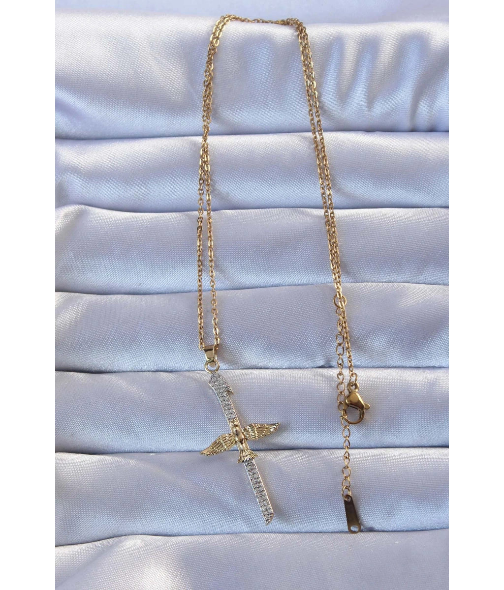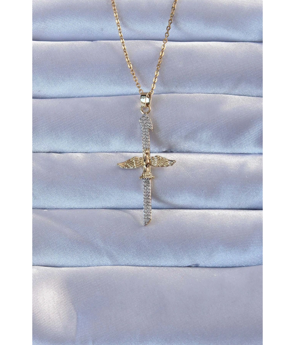 Shoecide 316l Altın Renk Zirkon Taşlı Kılıç Model Anka Kuşu Kolye