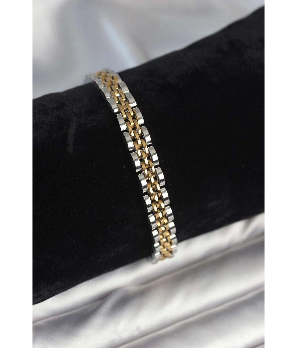 Shoecide 316l Çelik 7 Mm Kalınlıkta Gold Ve Gümüş Renkli Erkek Bileklik