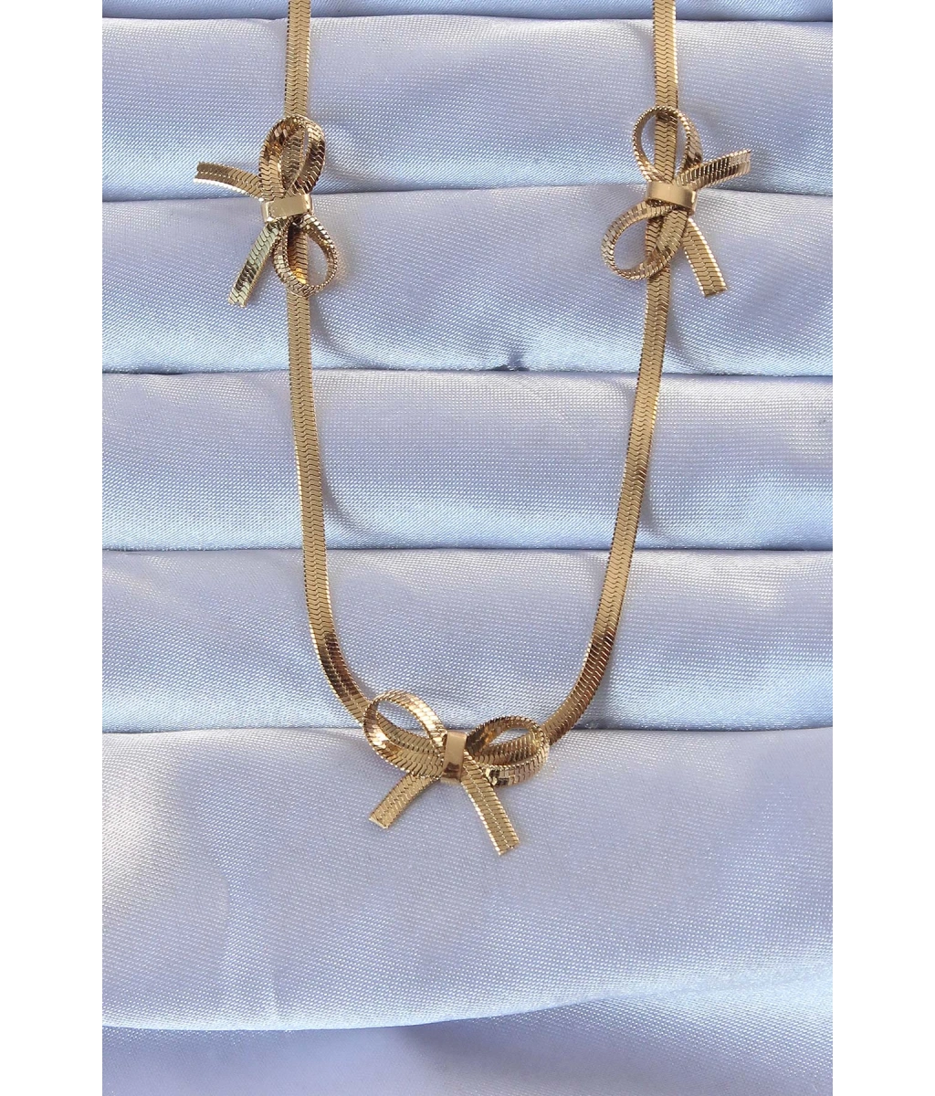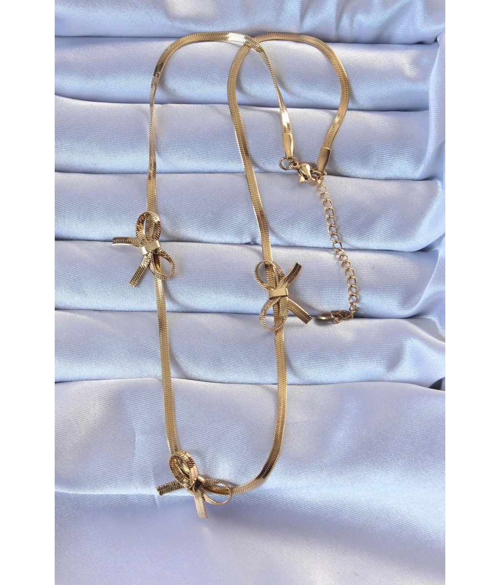 Shoecide 316l Çelik Altın Renk İtalyan Zincirli Fiyonk Kolye