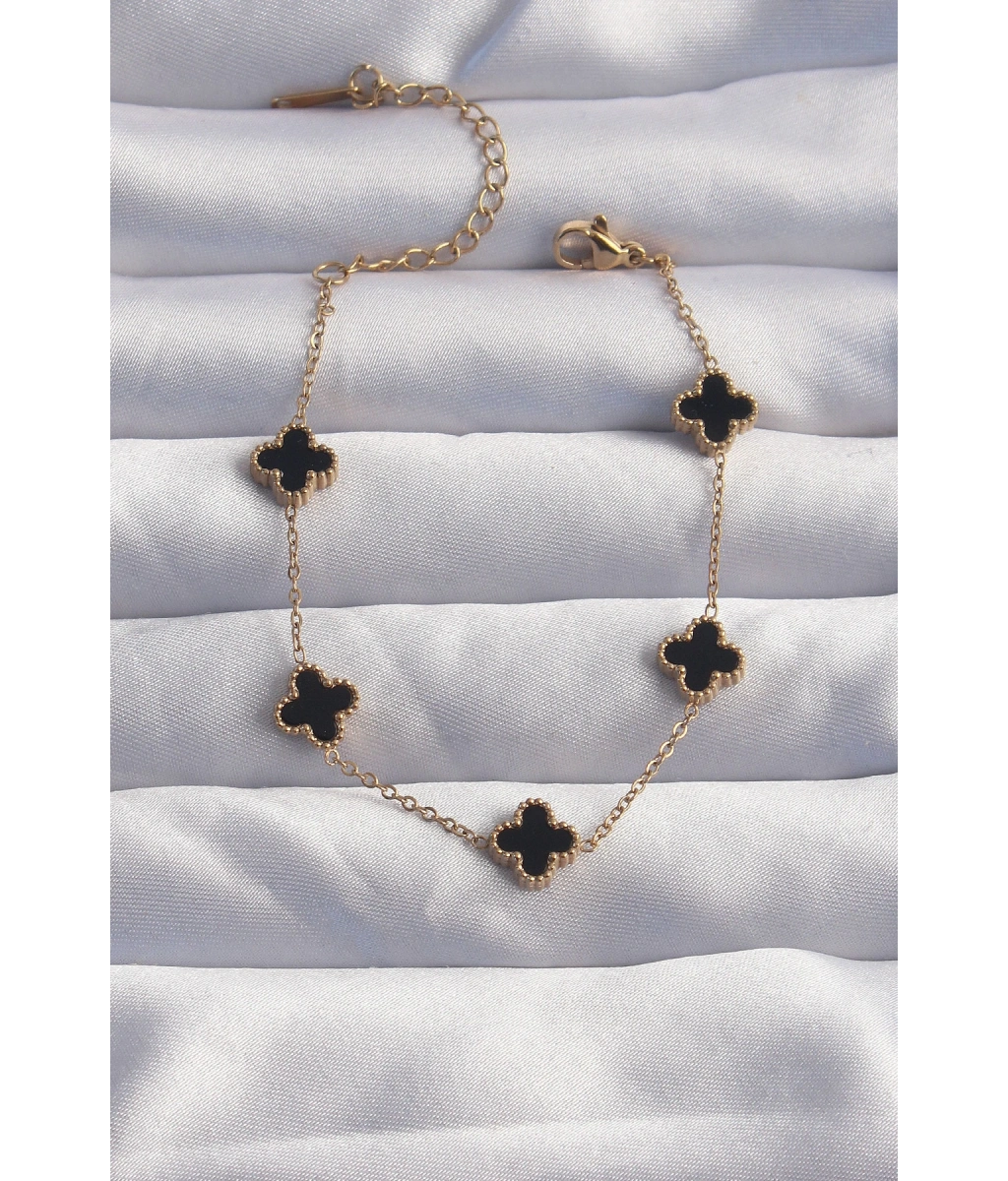 Shoecide 316l Çelik Baby Boy Gold Renk Siyah Mineli Yonca Bileklik