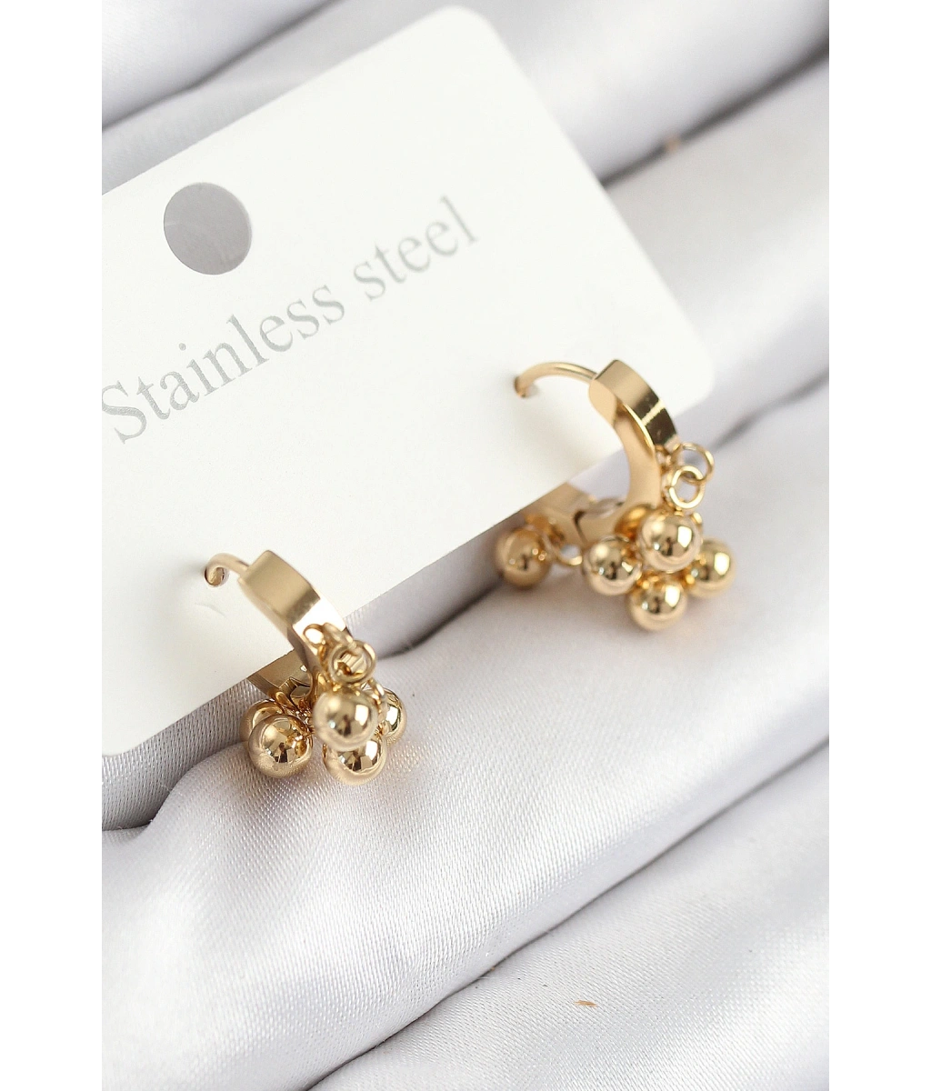 Shoecide 316l Çelik Boncuklu Halka Model Gold Renk Kadın Küpe