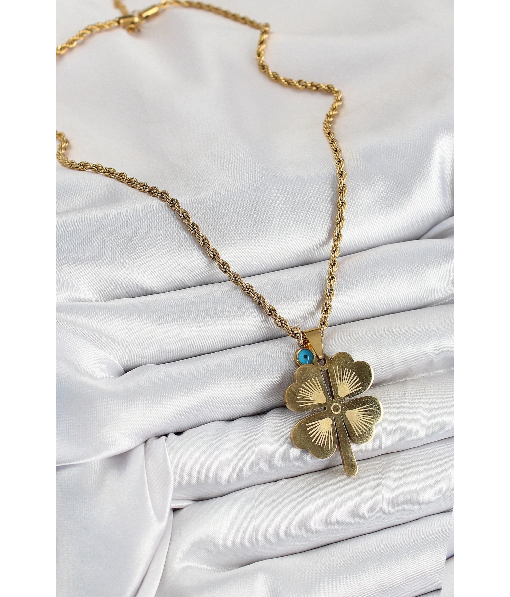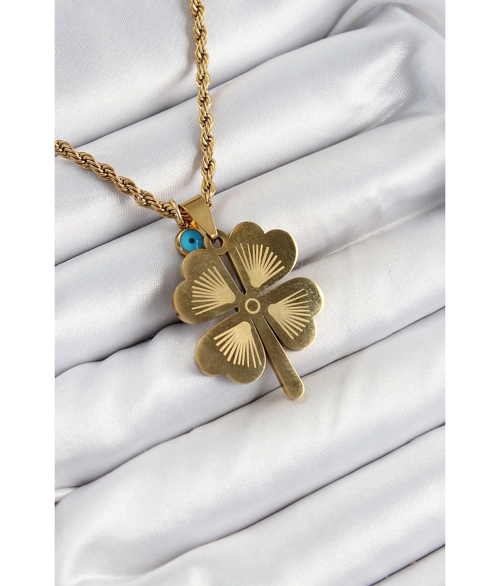 Shoecide 316l Çelik Burgu Zincirli Nazar Detaylı Yonca Model Gold Renk Kadın Kolye