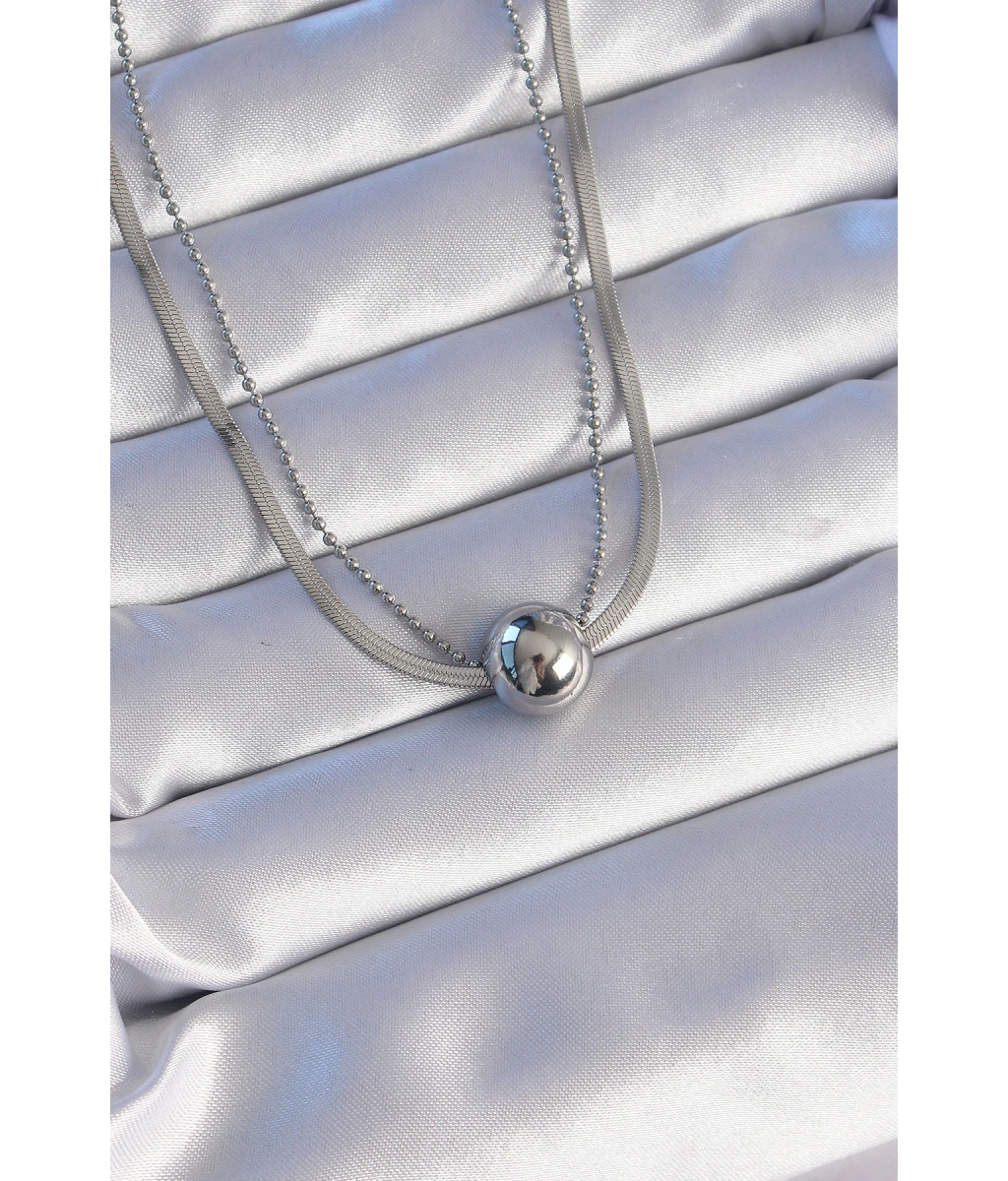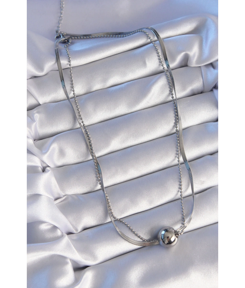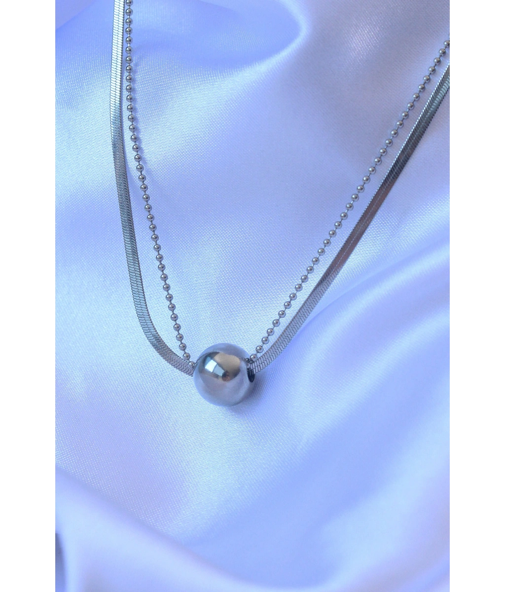 Shoecide 316l Çelik Çift Zincirli Gümüş Renk Topçuk İtalyan Model Kolye