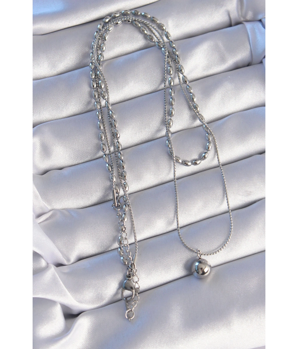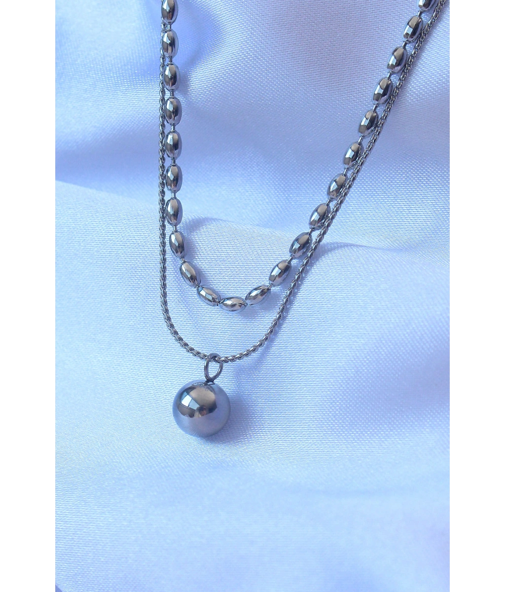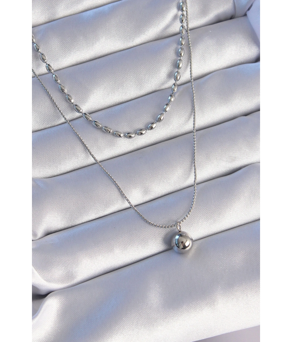 Shoecide 316l Çelik Çift Zincirli Gümüş Renk Topçuk Model Kolye