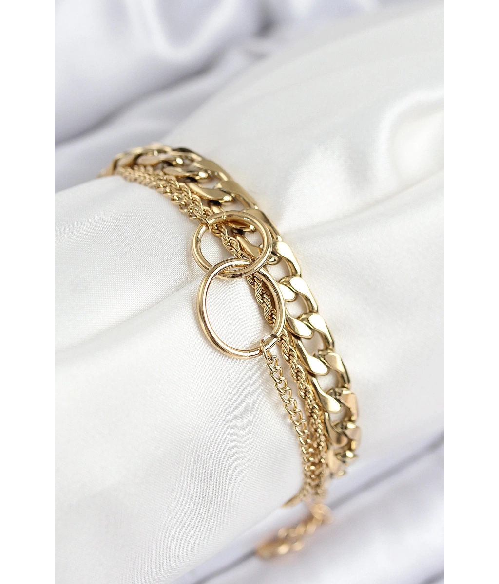 Shoecide 316l Çelik Çoklu Görünüm Geçmeli Halka Model Gold Renk Kadın Bileklik