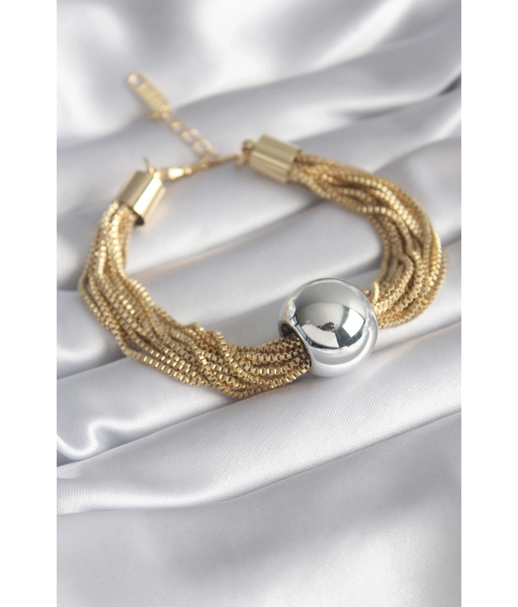 Shoecide 316l Çelik Gold Çoklu Zincir Renk Gümüş Renk Top Model Kadın Bileklik