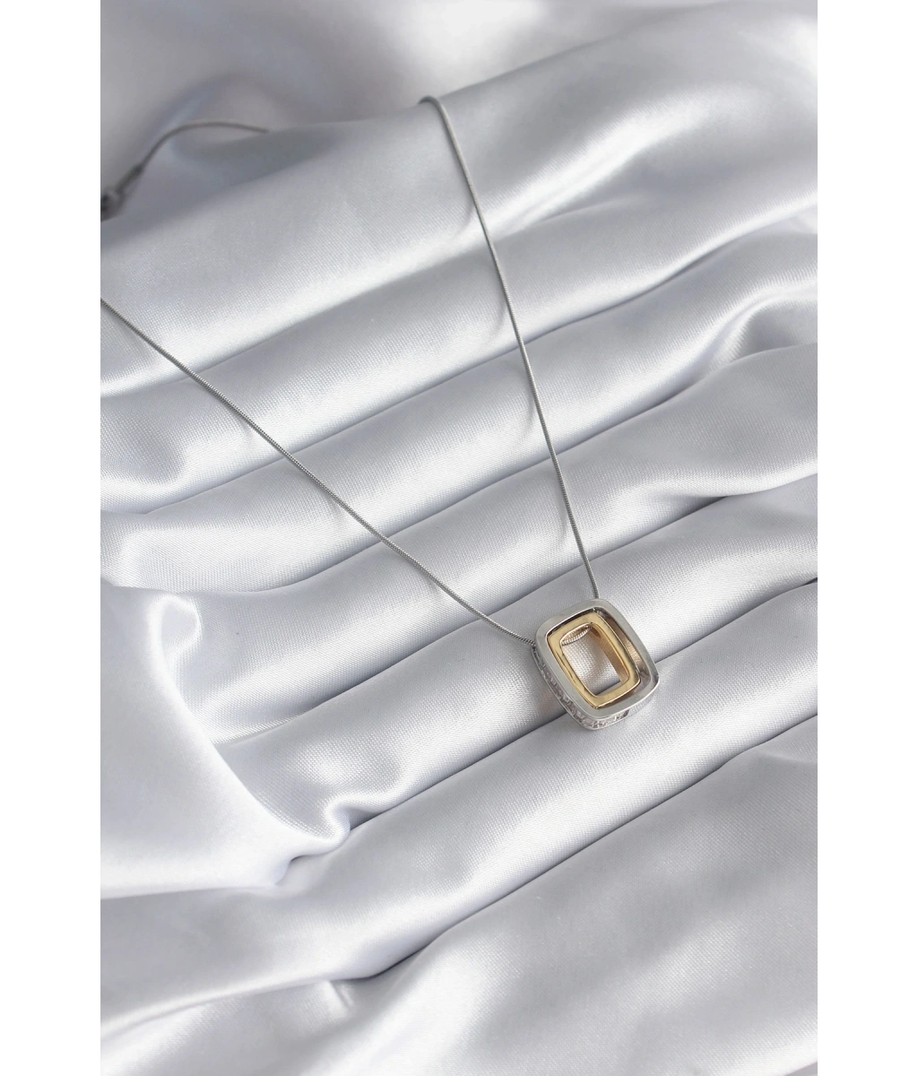 Shoecide 316l Çelik Gold Gümüş Renk Kare Model Zirkon Taş Detay Kadın Kolye