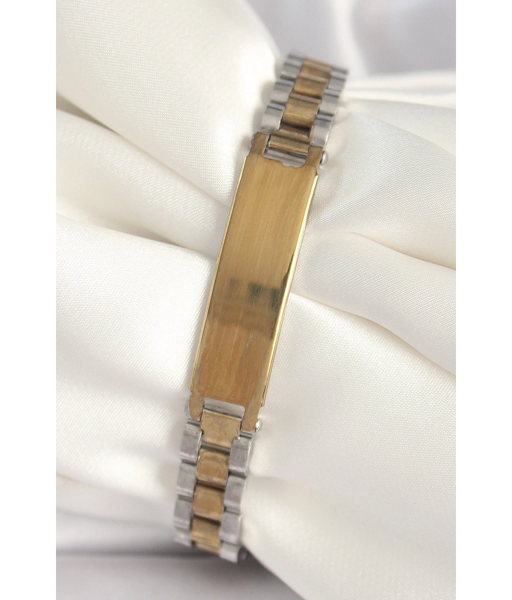 Shoecide 316l Çelik Gold Gümüş Renk Zincir Künye Model Erkek Bileklik