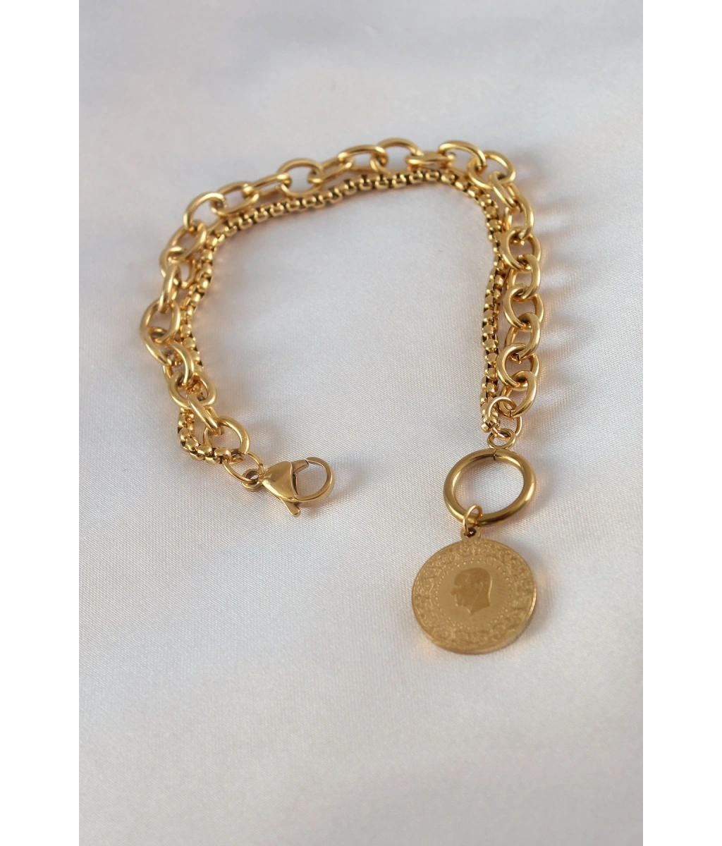 Shoecide 316l Çelik Gold Renk 2'li Zincir Model Çeyrek Altınlı Kadın Bileklik