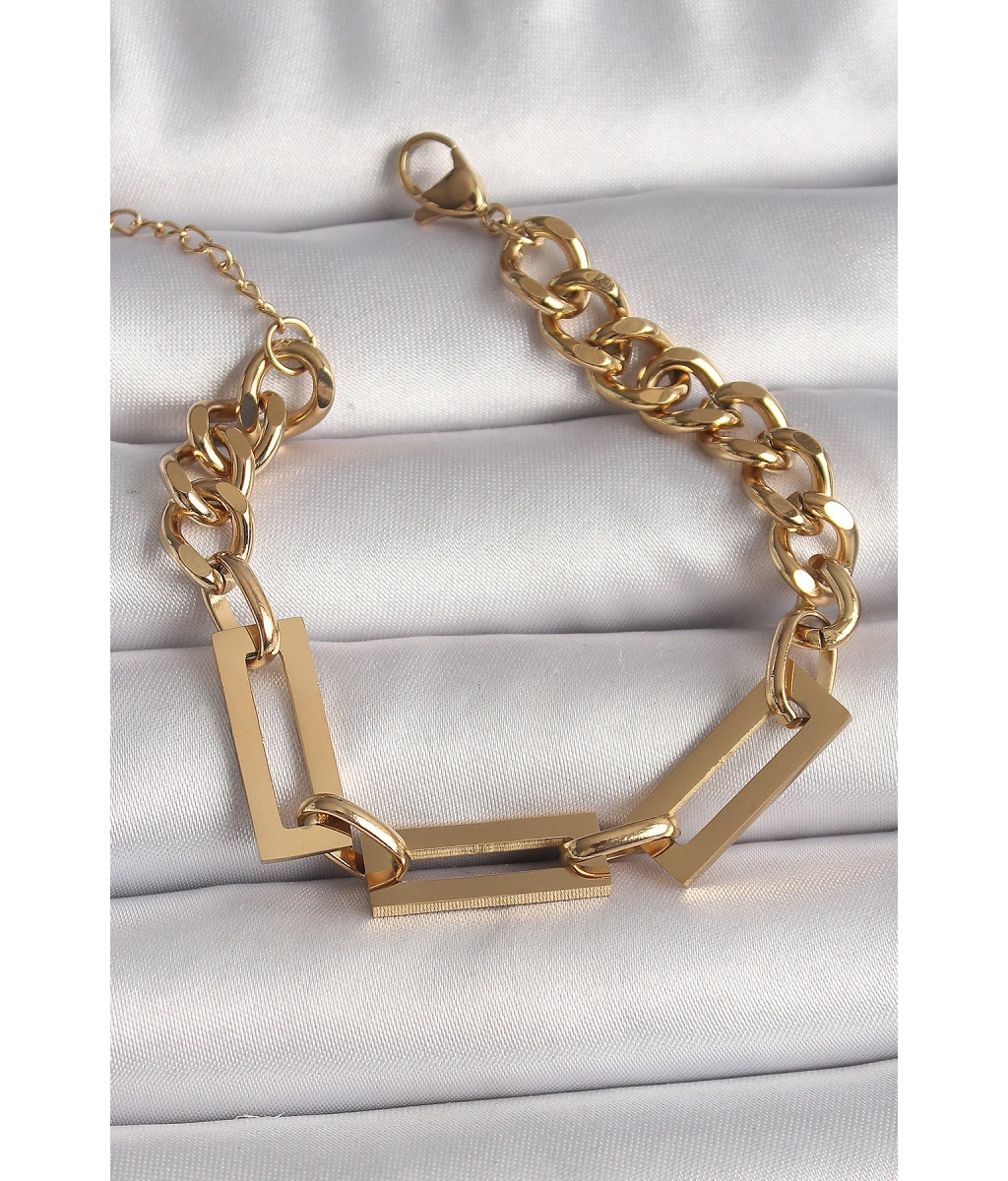 Shoecide 316l Çelik Gold Renk Ezme Zincir Model Kadın Kelepçe Bileklik