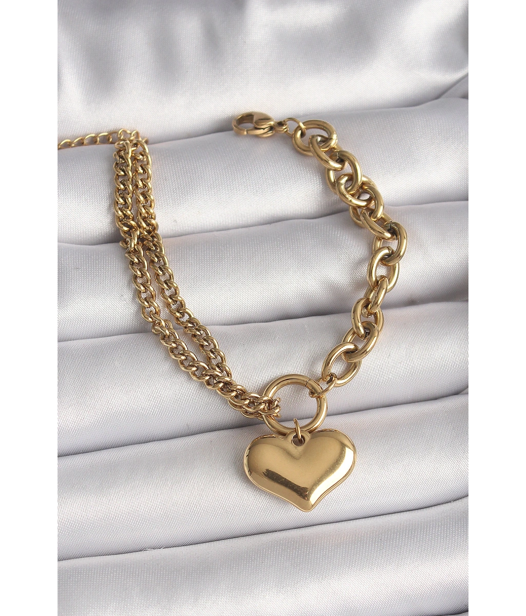 Shoecide 316l Çelik Gold Renk 2'li Zincir Model Kalp Figür Kadın Bileklik