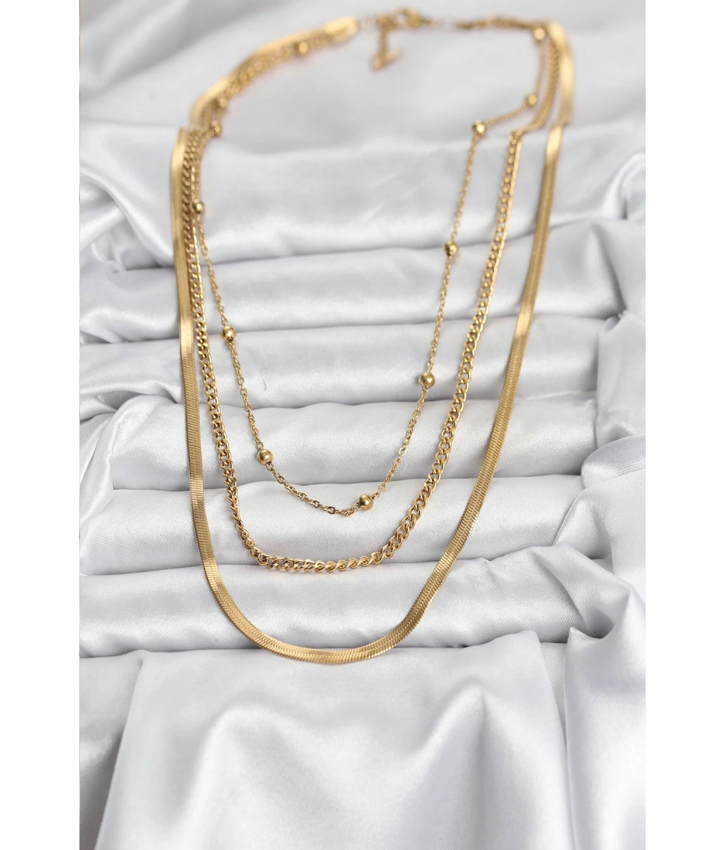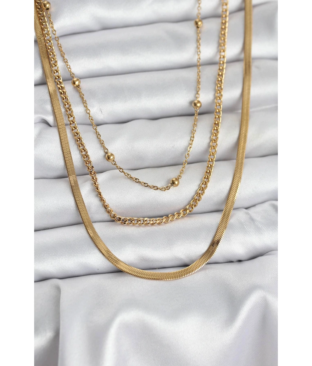 Shoecide 316l Çelik Gold Renk 3'lü Kadın Kolye
