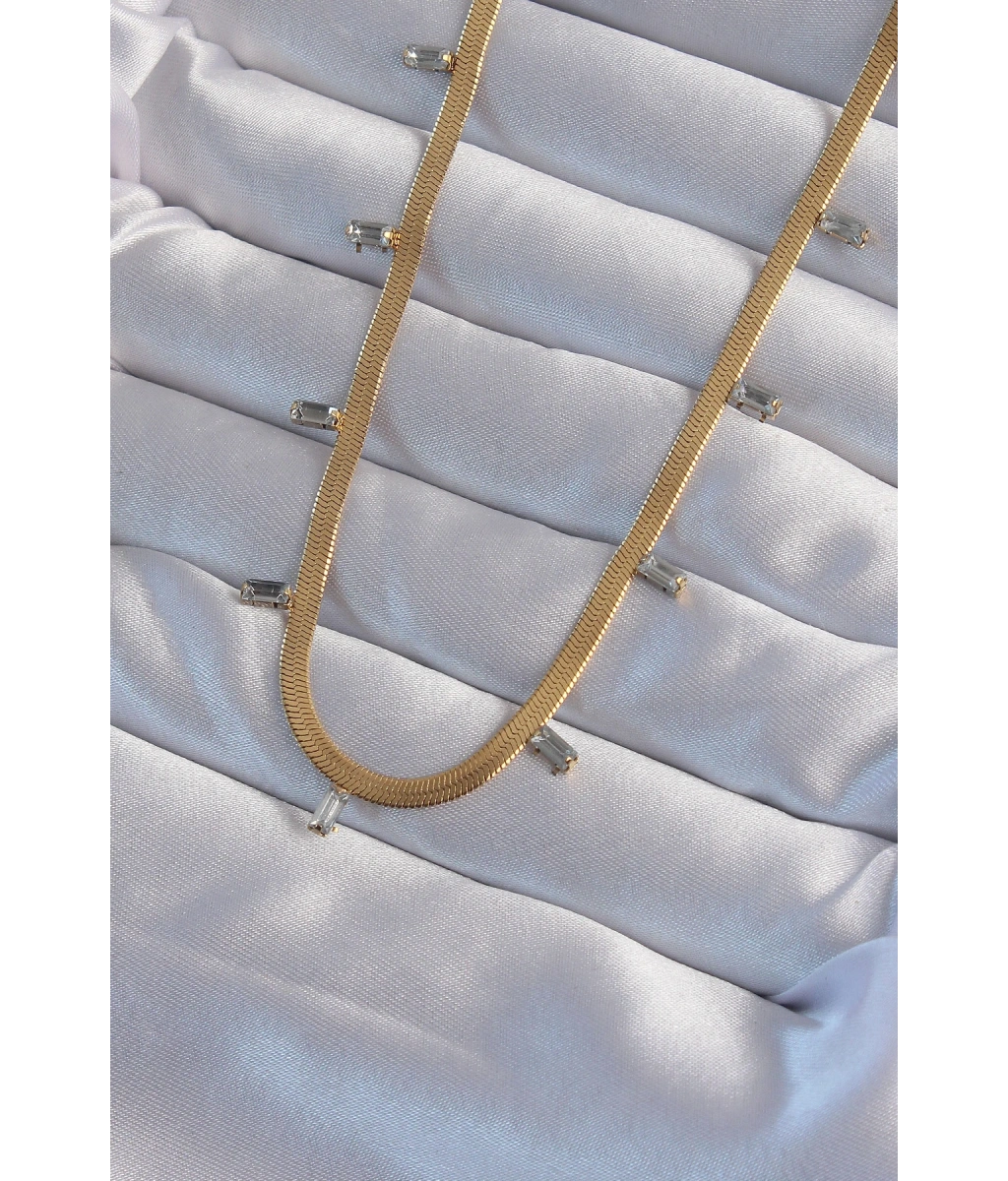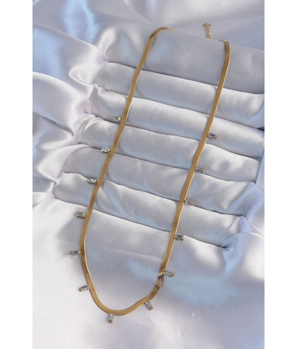 Shoecide 316l Çelik Gold Renk Baget Taşlı İtalyan Zincir Kolye