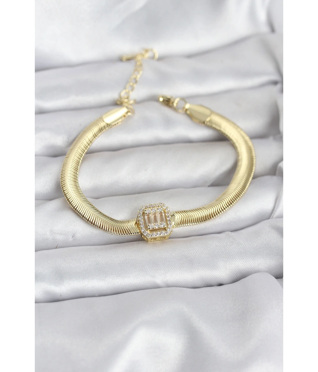 Shoecide 316l Çelik Gold Renk Kare Zirkon Taşlı Yılan Zincirli Kadın Bileklik
