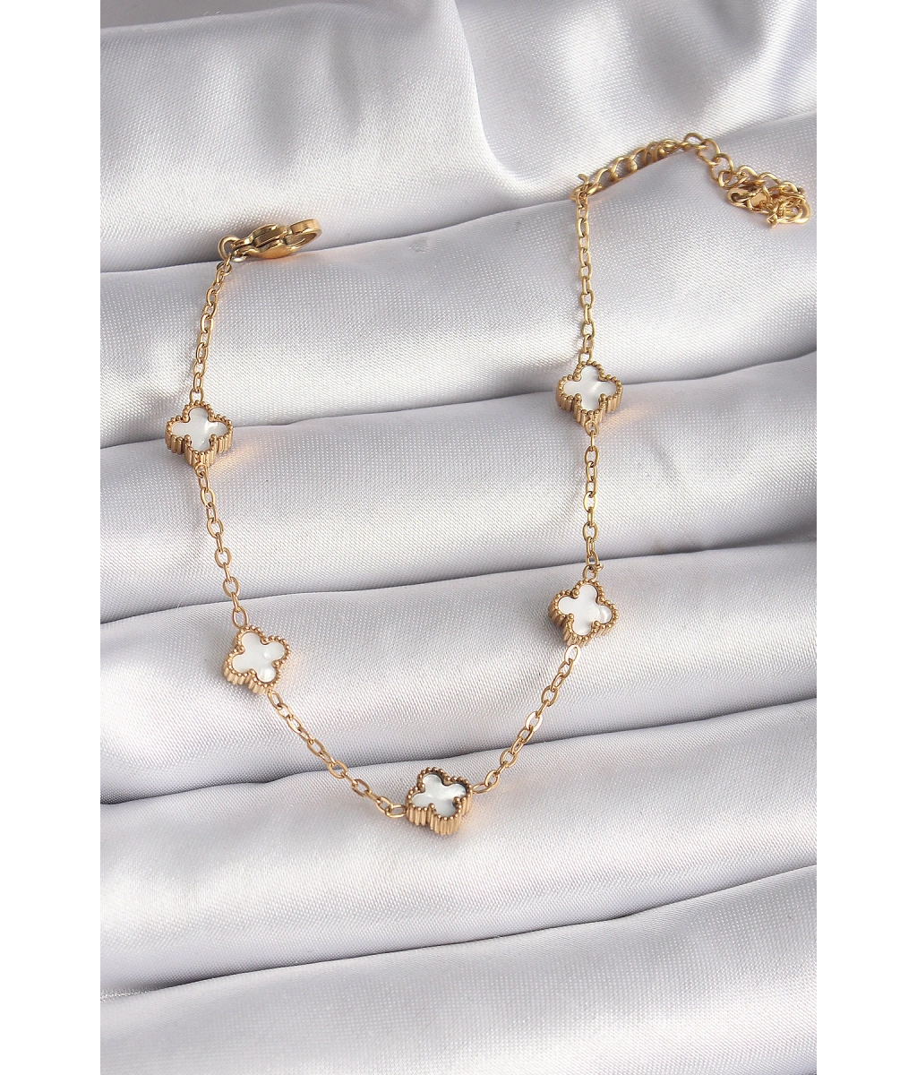 Shoecide 316l Çelik Gold Renk Beyaz Baby Boy Yonca Model Kadın Bileklik