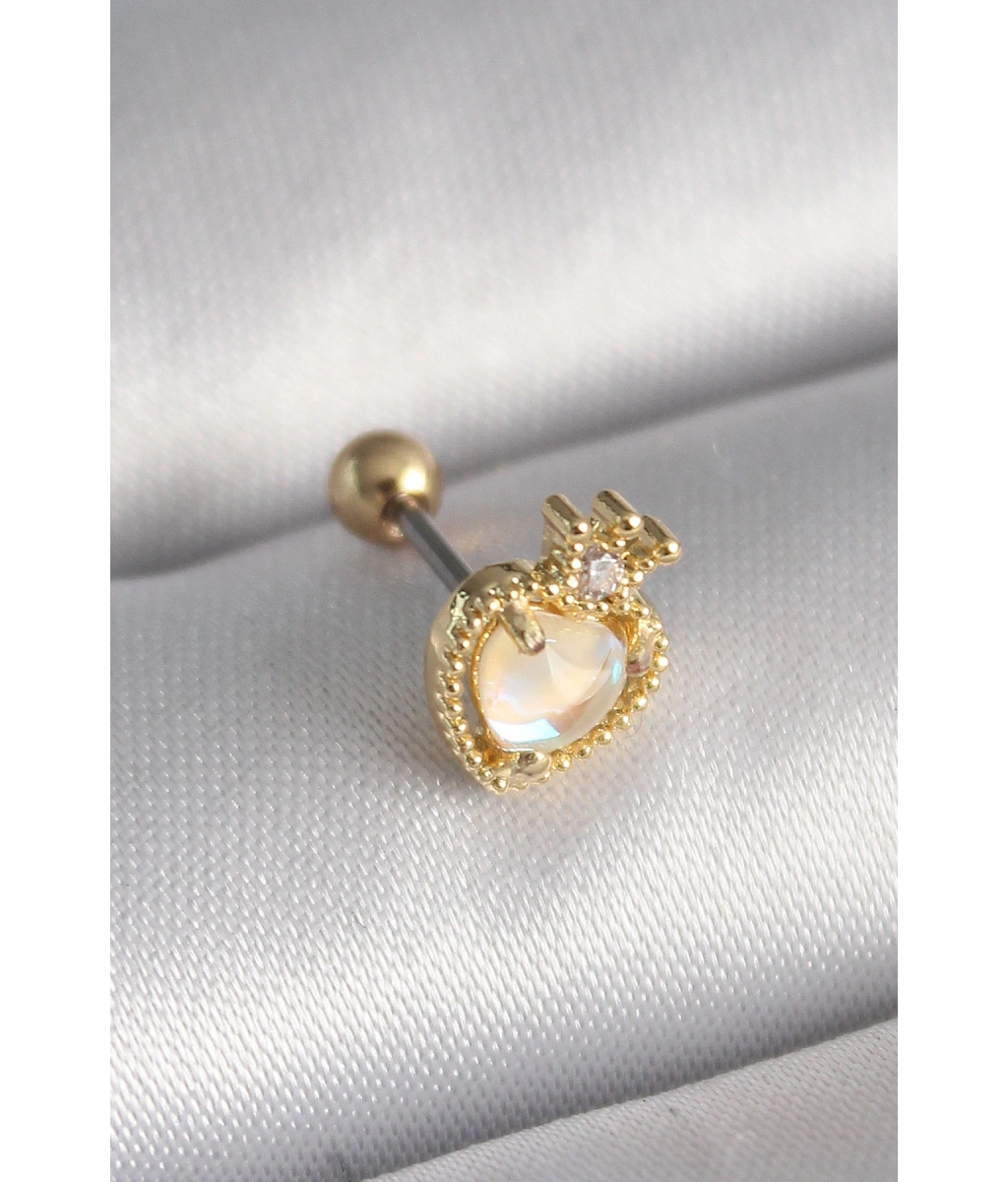 Shoecide 316l Çelik Gold Renk Beyaz Mineli Kalp Zirkon Taş Detaylı Taç Tragus Piercing