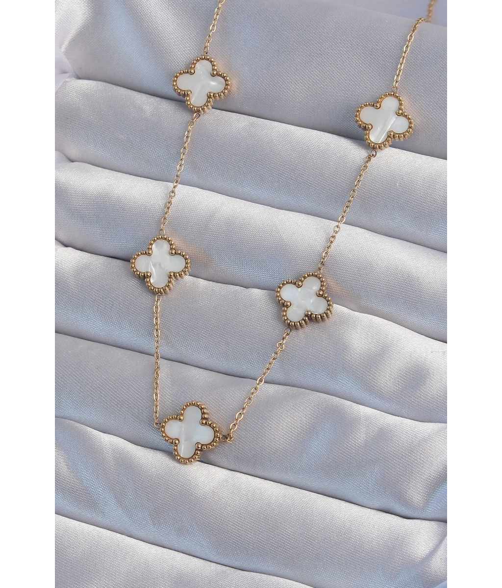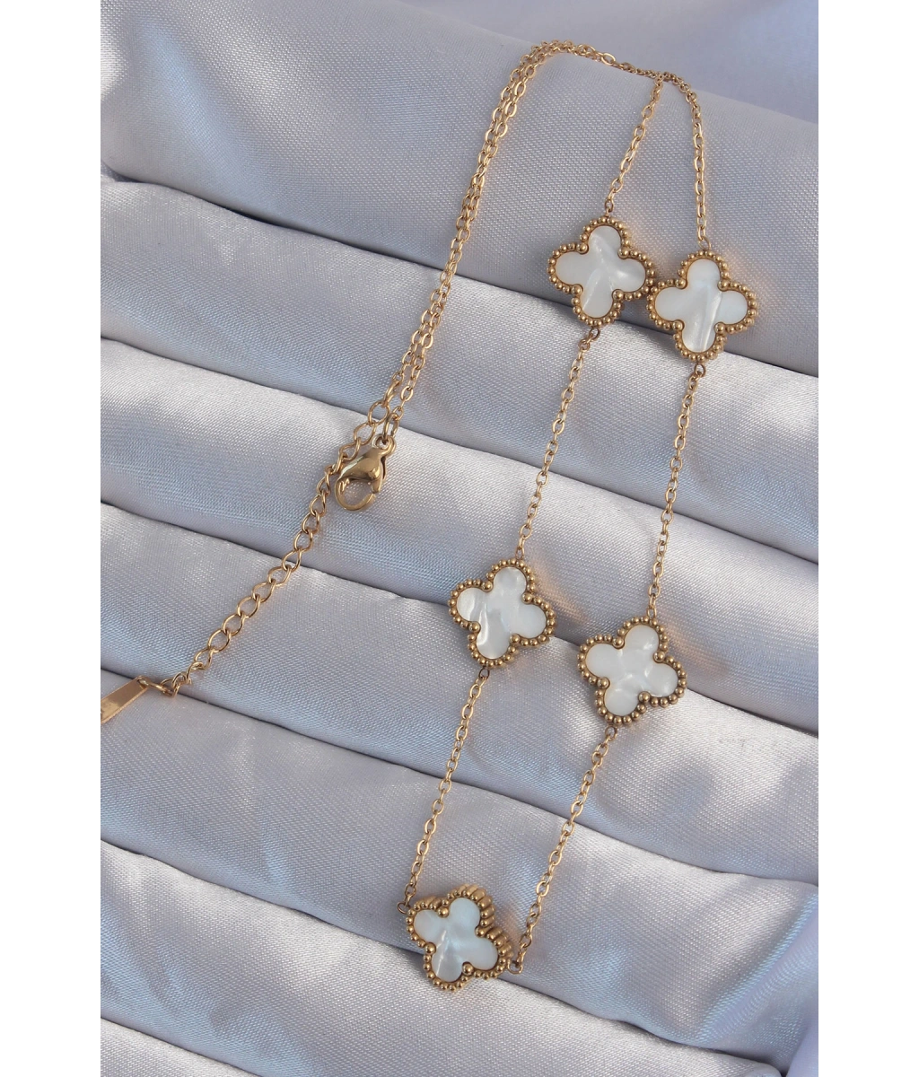 Shoecide 316l Çelik Gold Renk Beyaz Sedefli Yonca Kolye