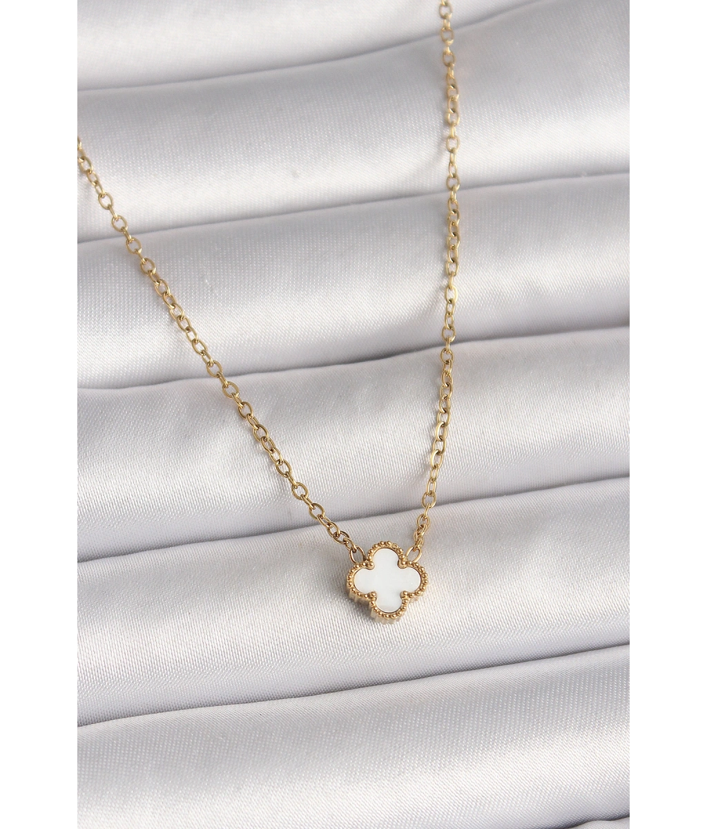 Shoecide 316l Çelik Gold Renk Beyaz Yonca Model Kadın Kolye