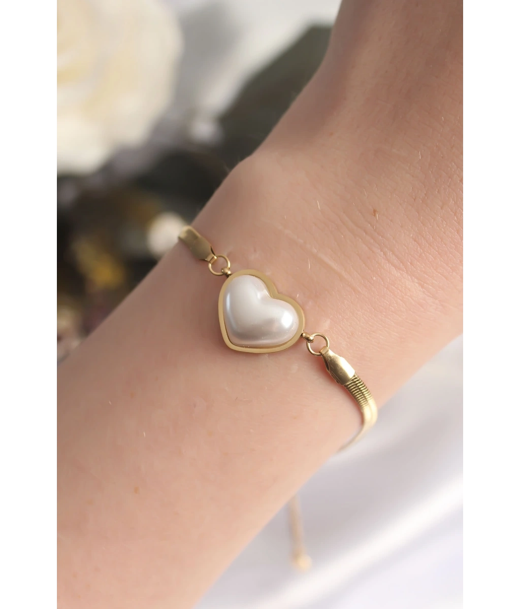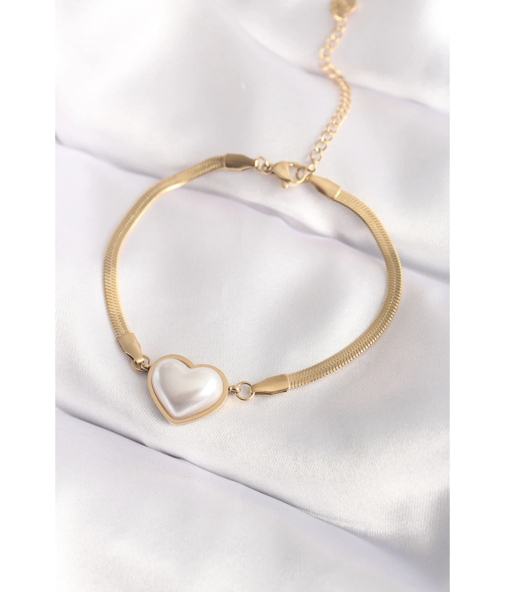 Shoecide 316l Çelik Gold Renk Bombeli Kalp Kadın Bileklik