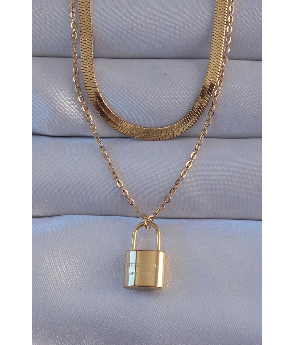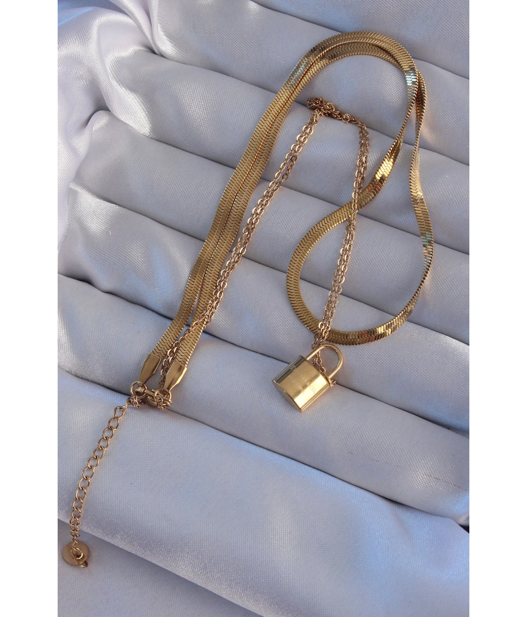 Shoecide 316l Çelik Gold Renk Çift Zincir Kilit Model Kolye