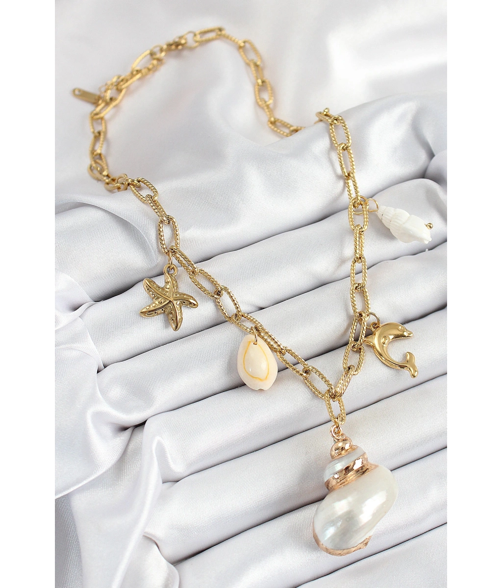 Shoecide 316l Çelik Gold Renk Deniz Kabuğu Ve Yıldızı Konseptli Kadın Kolye