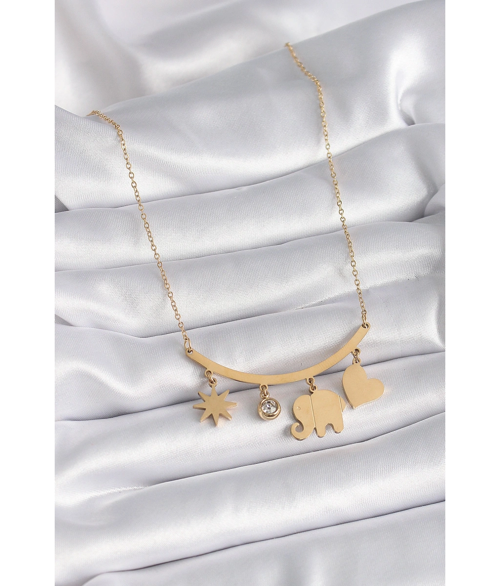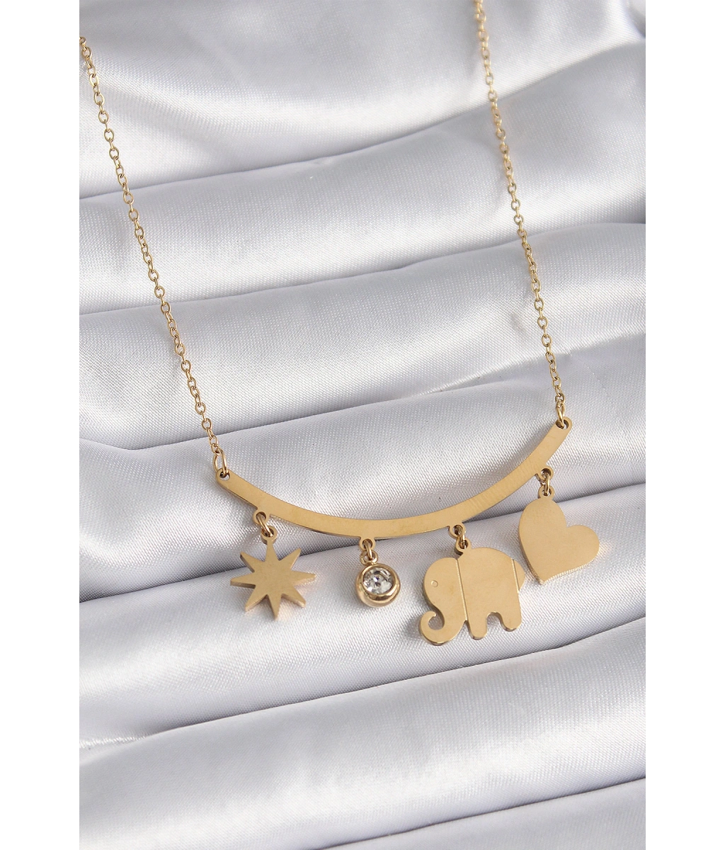 Shoecide 316l Çelik Gold Renk Fil Figür Zirkon Taş Detay Kadın Kolye