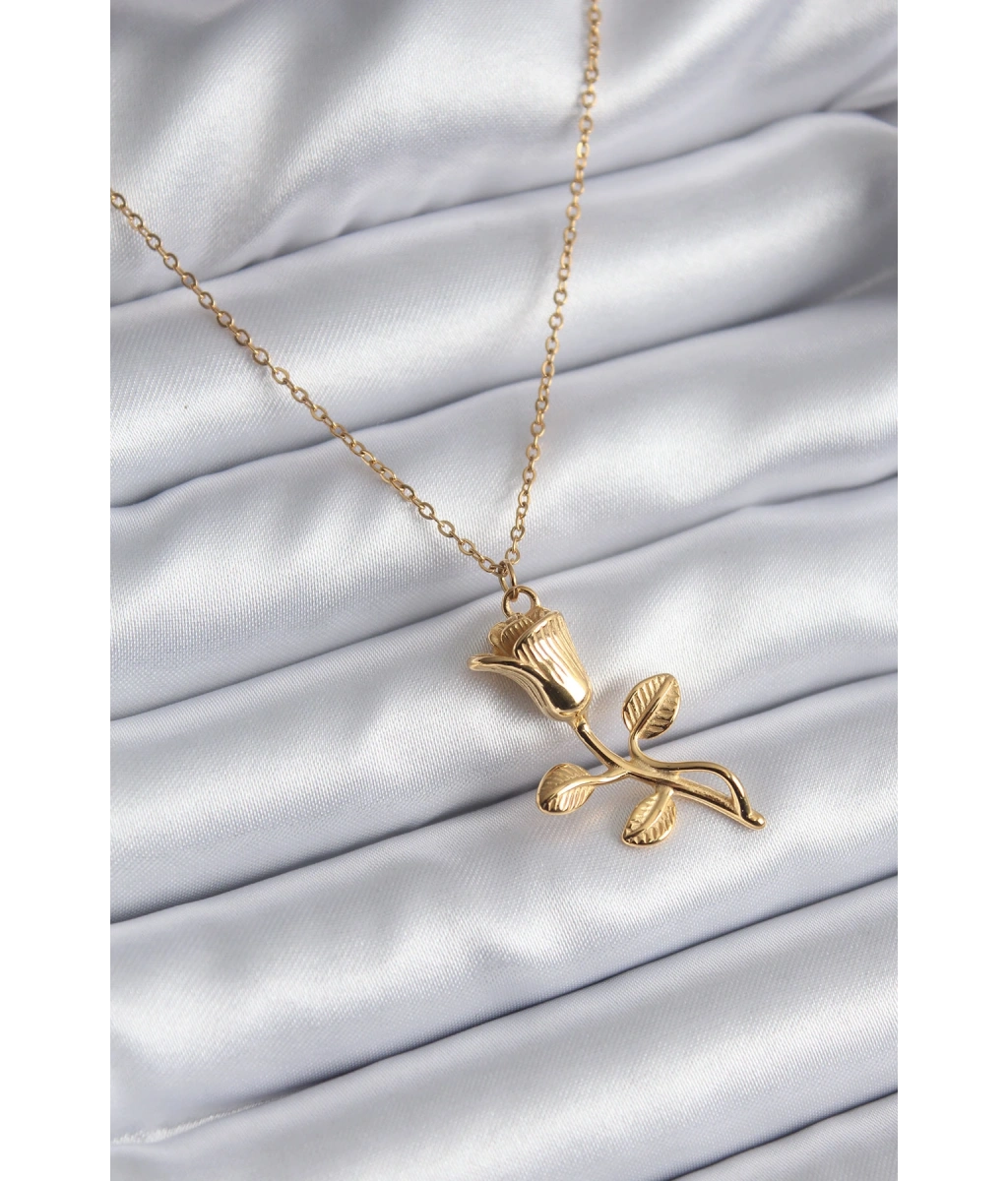 Shoecide 316l Çelik Gold Renk Gül Model Kadın Kolye