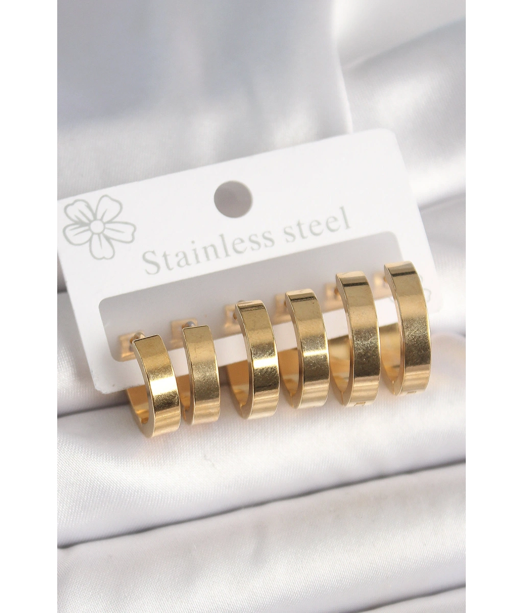 Shoecide 316l Çelik Gold Renk Halka Model Kadın Küpe Seti
