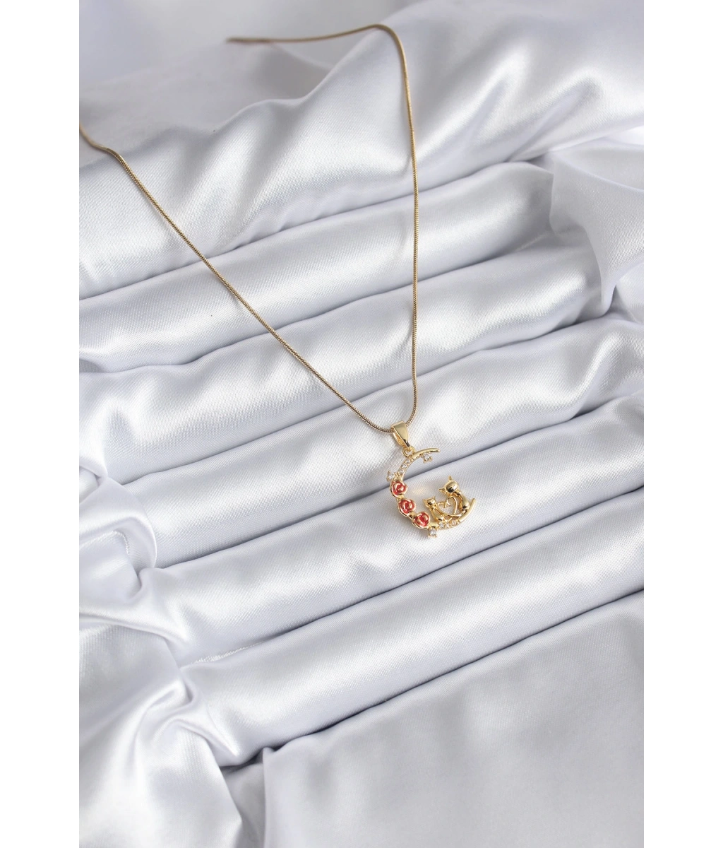 Shoecide 316l Çelik Gold Renk Hilal Kedi Model Zirkon Taşlı Detay Kadın Kolye