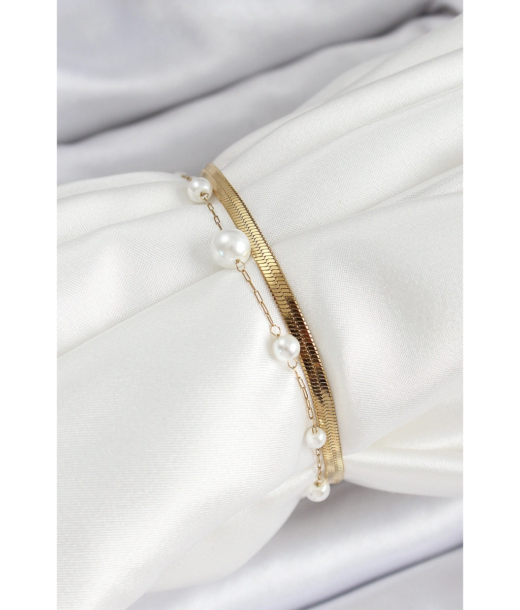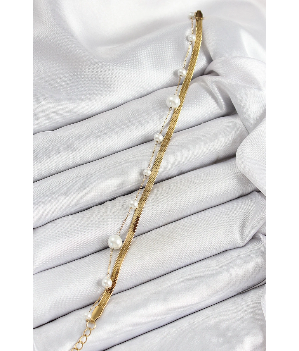 Shoecide 316l Çelik Gold Renk İncili Ve İtalyan Zincirli Kadın Bileklik
