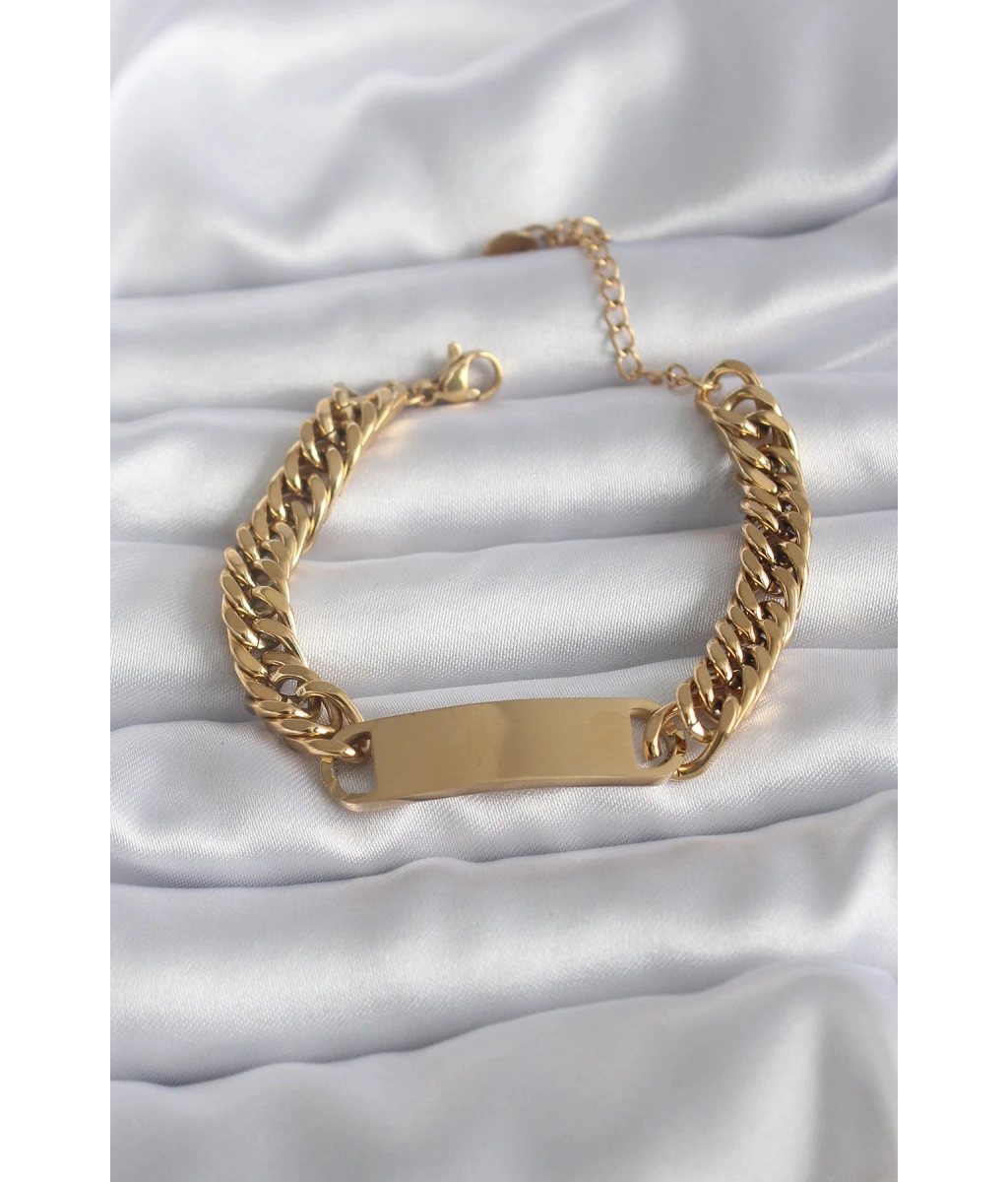 Shoecide 316l Çelik Gold Renk İsim Yazılabilir Plaka Model Kadın Bileklik
