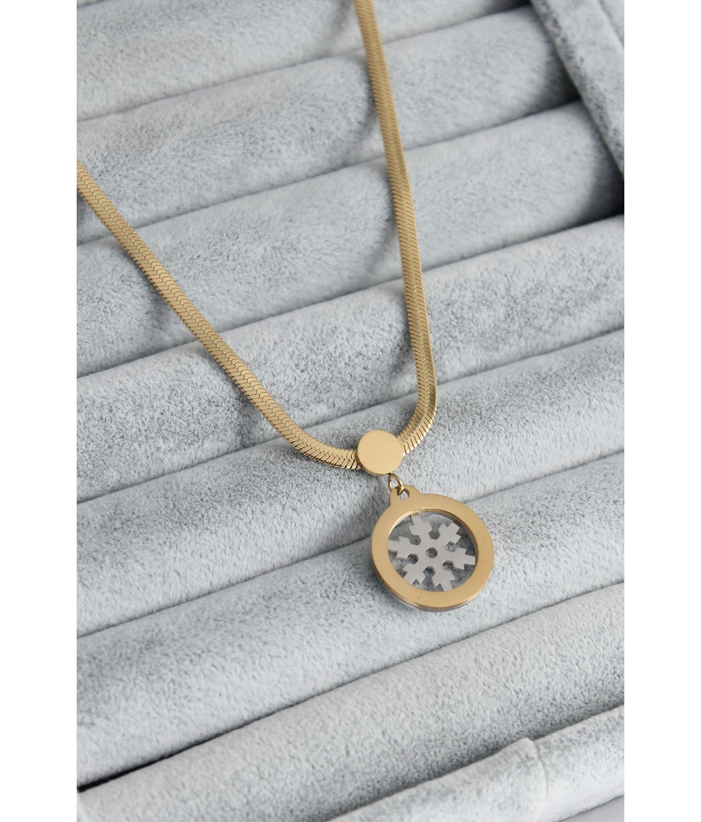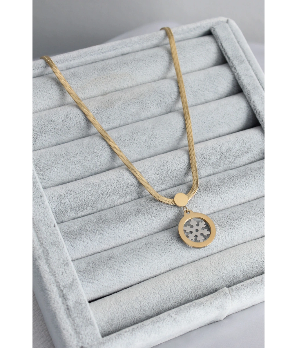 Shoecide 316l Çelik Gold Renk İtalyan Zincir Model Gümüş Kar Tanesi Figür Kadın Kolye