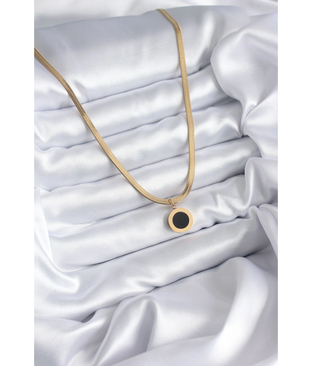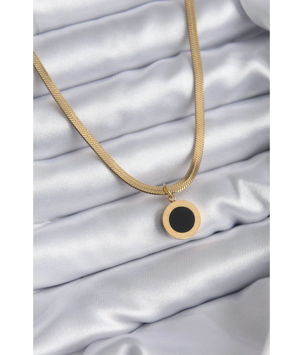 Shoecide 316l Çelik Zincir Gold Renk Siyah Ve Zirkon Taşlı Baby Boy Yonca Kadın Kolye