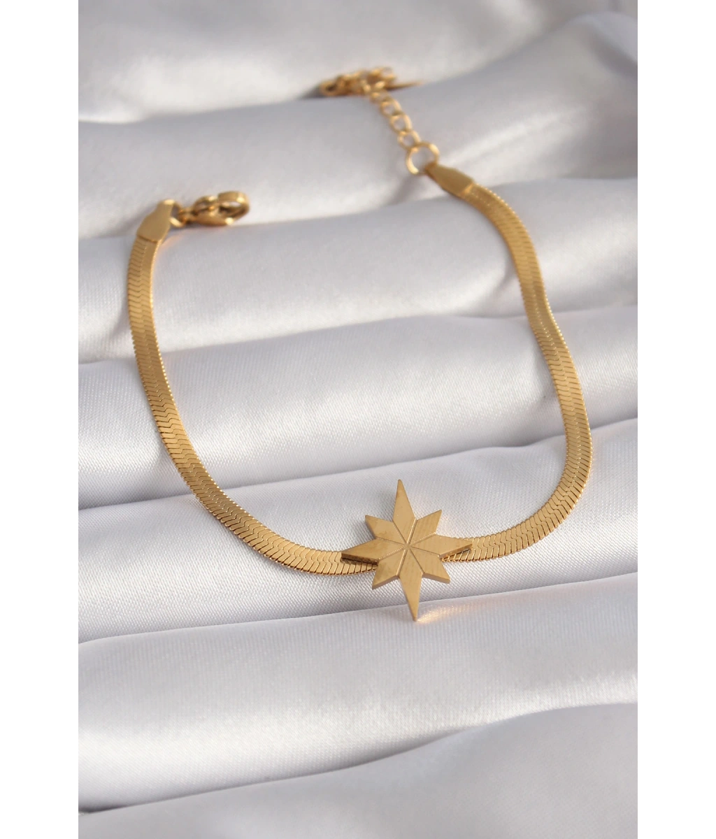 Shoecide 316l Çelik Gold Renk İtalyan Zincir Model Kutup Yıldızı Figür Kadın Bileklik