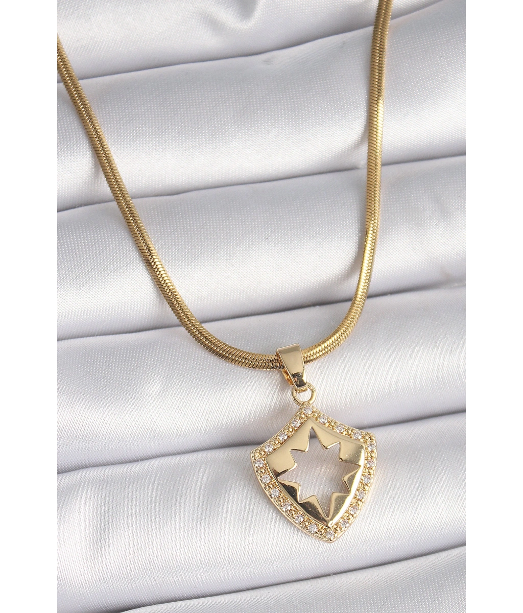 Shoecide 316l Çelik Zincir Gold Renk Kutup Yıldızı Model Zirkon Taşlı Kadın Kolye