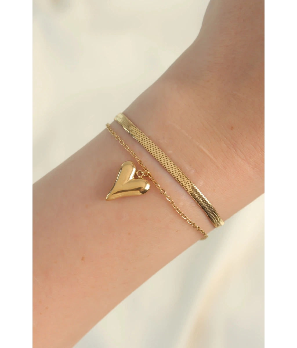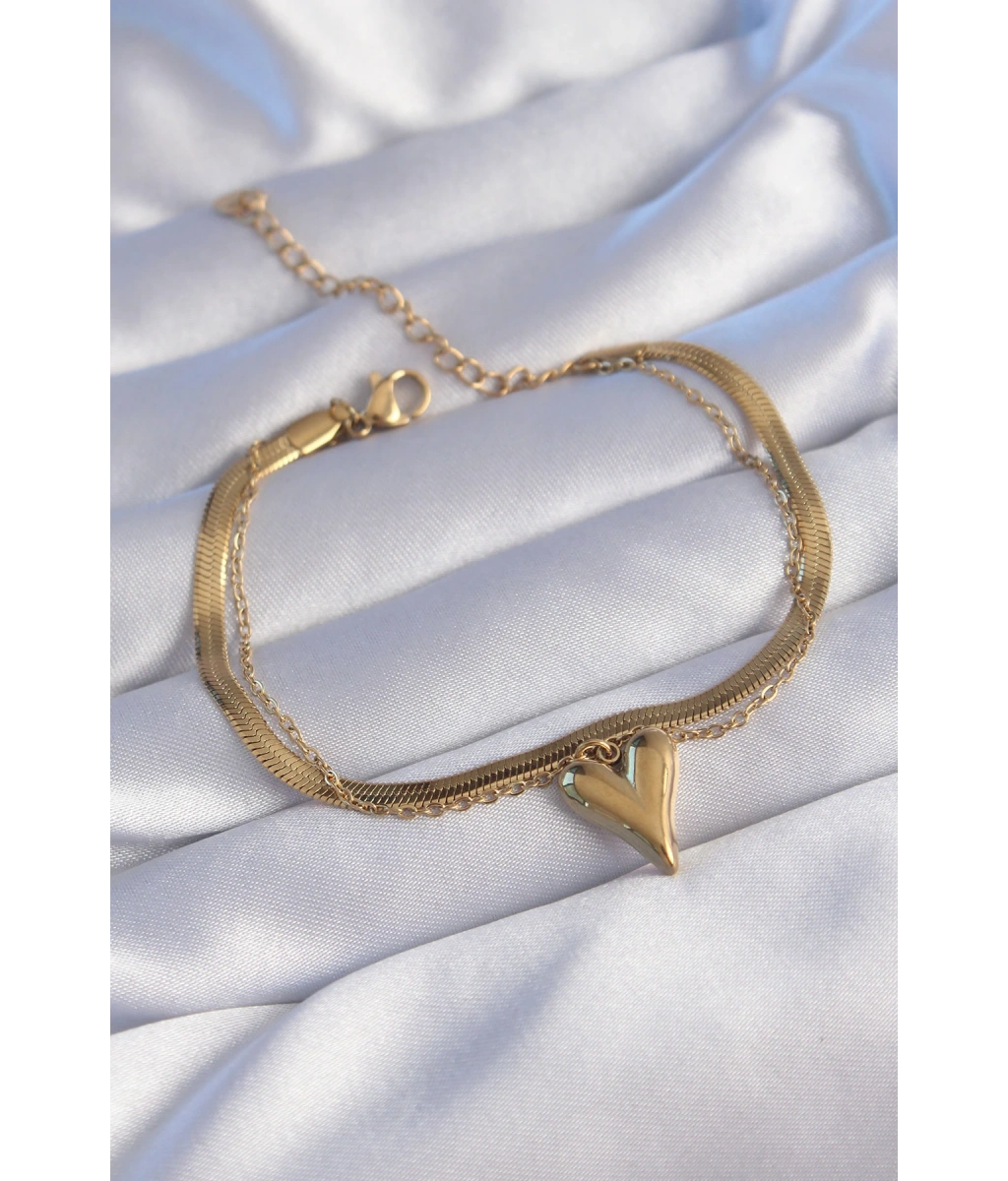 Shoecide 316l Çelik Gold Renk İtalyan Zincirli Kalp Model Bileklik