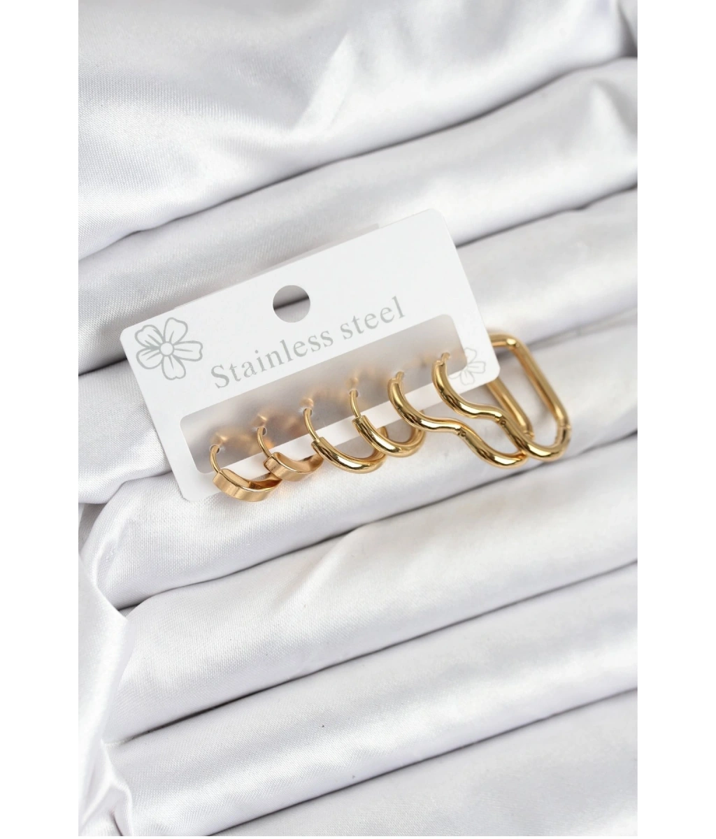 Shoecide 316l Çelik Gold Renk Kadın Küpe Seti