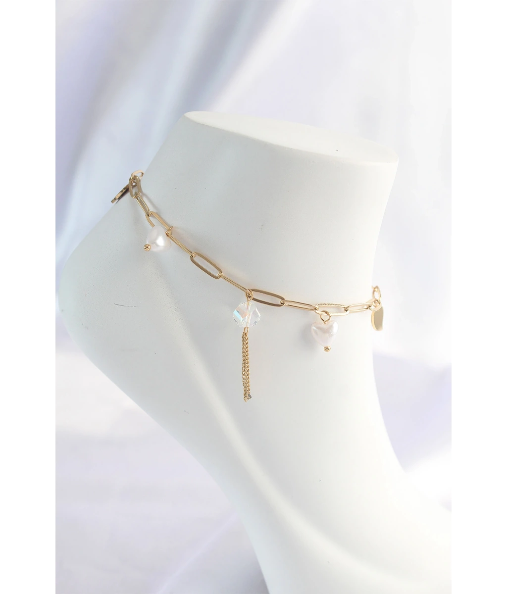 Shoecide 316l Çelik Gold Renk Sallantı Mineli Kalp Figür Topçuk Detay Kadın Halhal