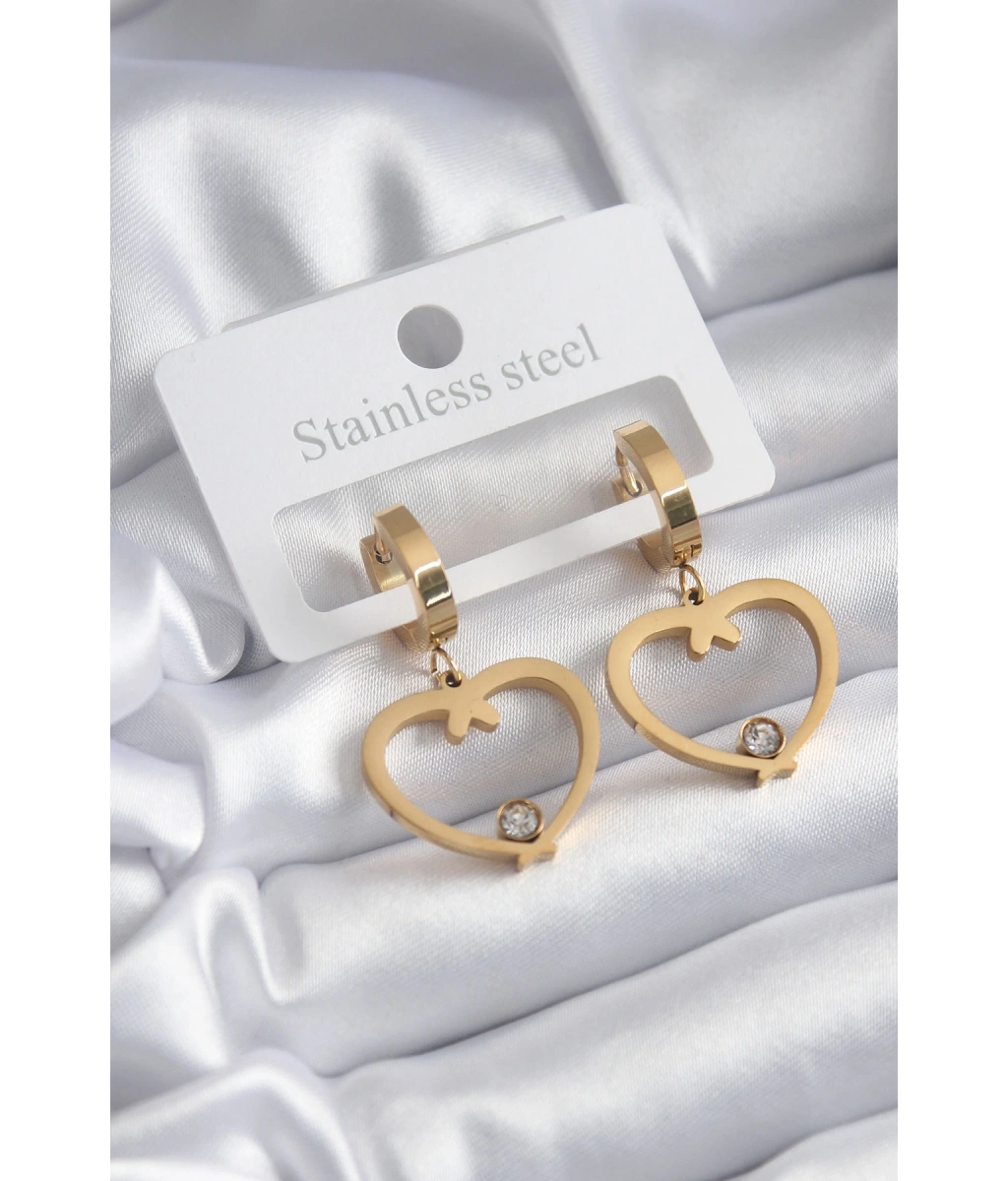Shoecide 316l Çelik Gold Renk Kalp Model Zirkon Taş Detay Kadın Küpe