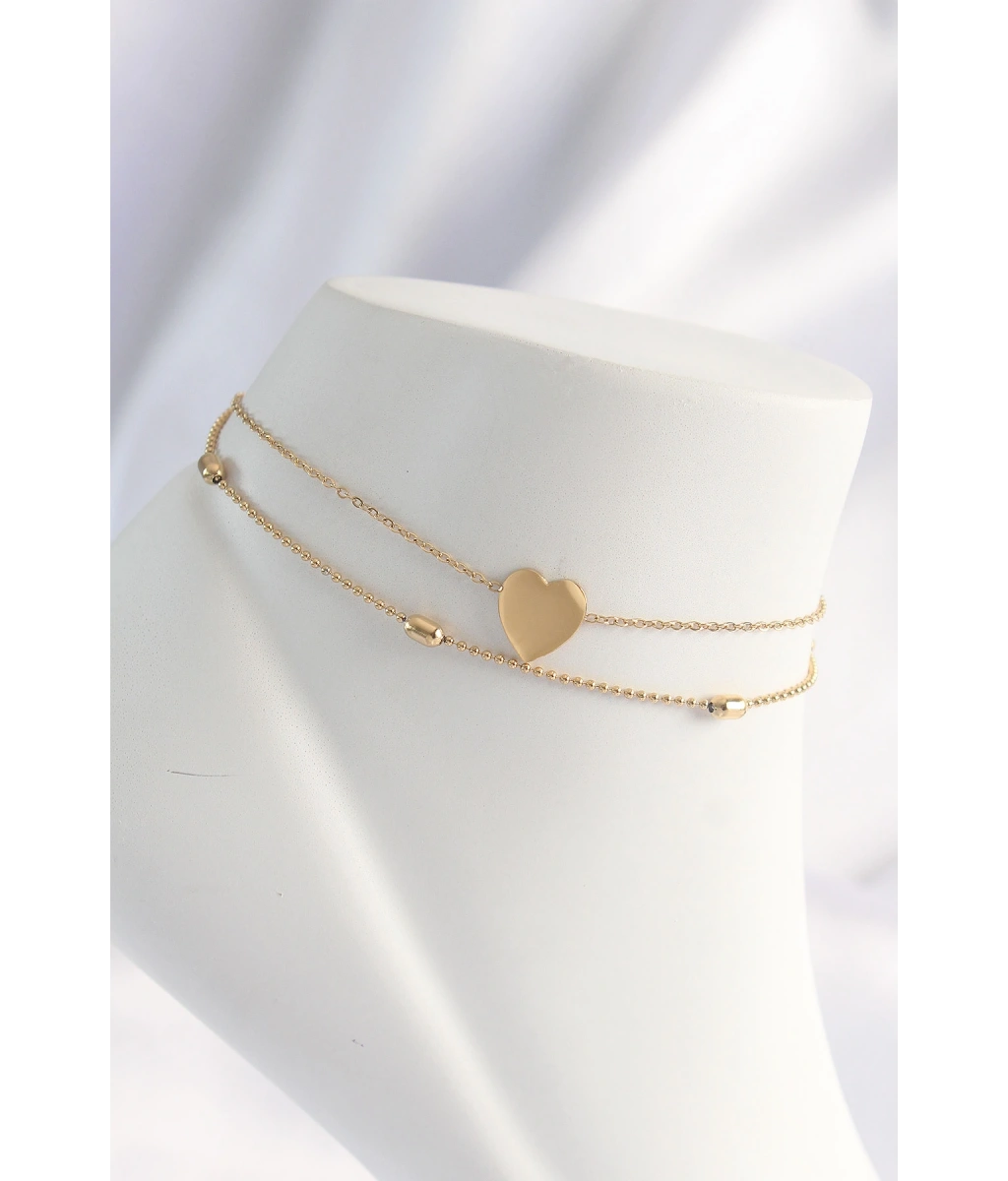 Shoecide 316l Çelik Gold Renk Kalp Tasarımlı 2li Halhal