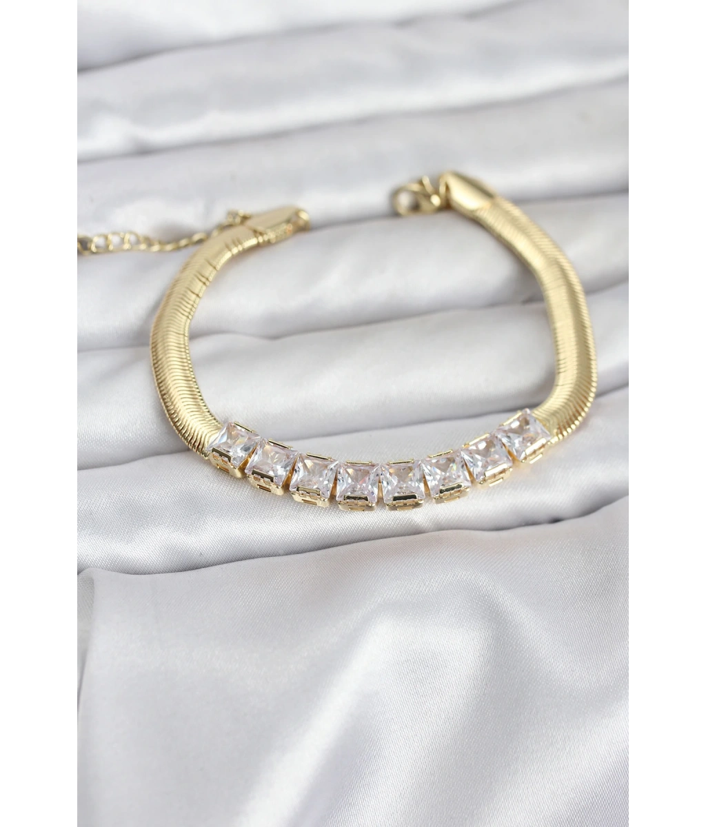 Shoecide 316l Çelik Gold Renk Kare Zirkon Taşlı Yılan Zincirli Kadın Bileklik