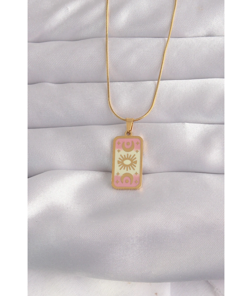 Shoecide 316l Çelik Gold Renk Karışık Mineli Ay Figür Tarot Kolye