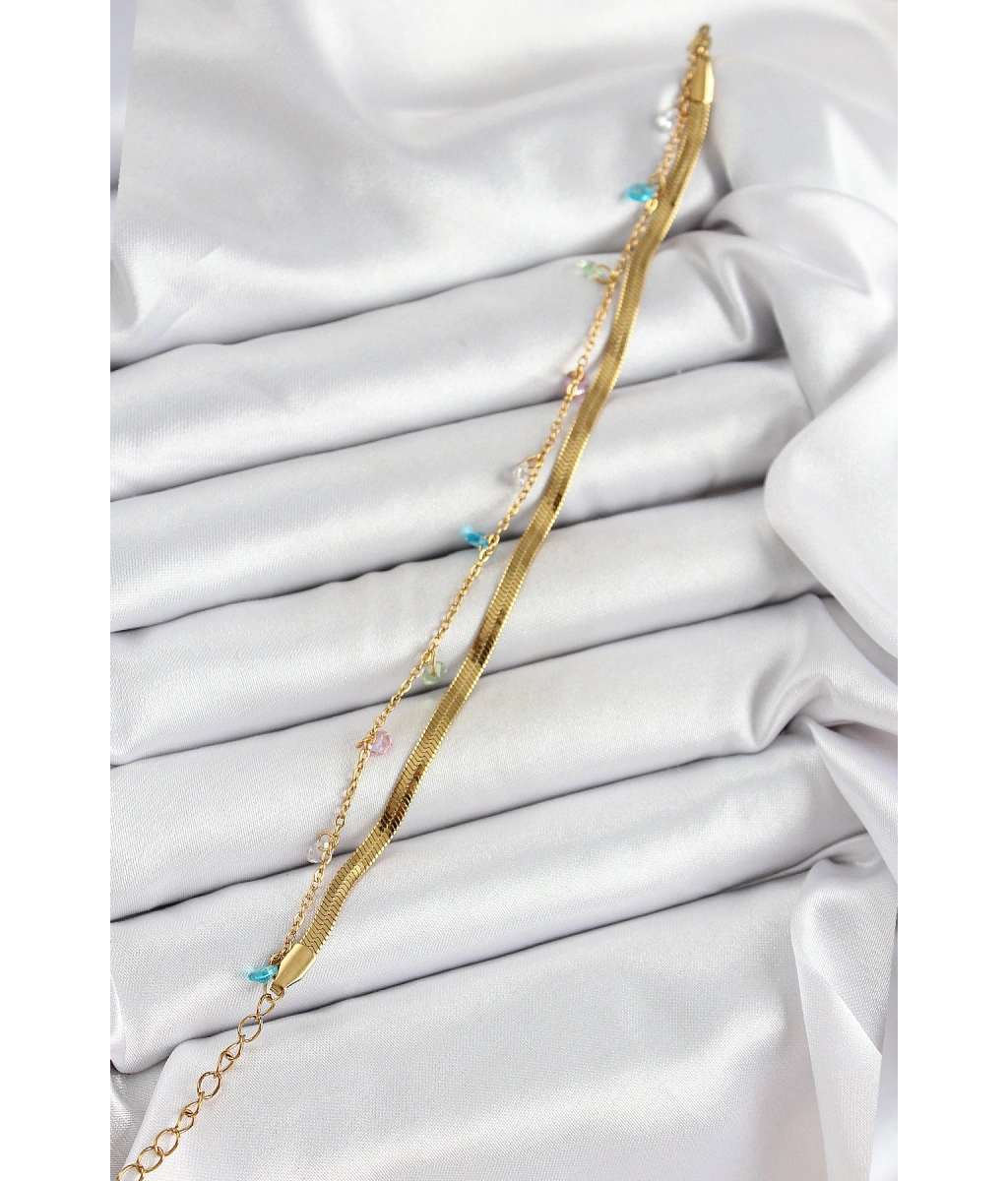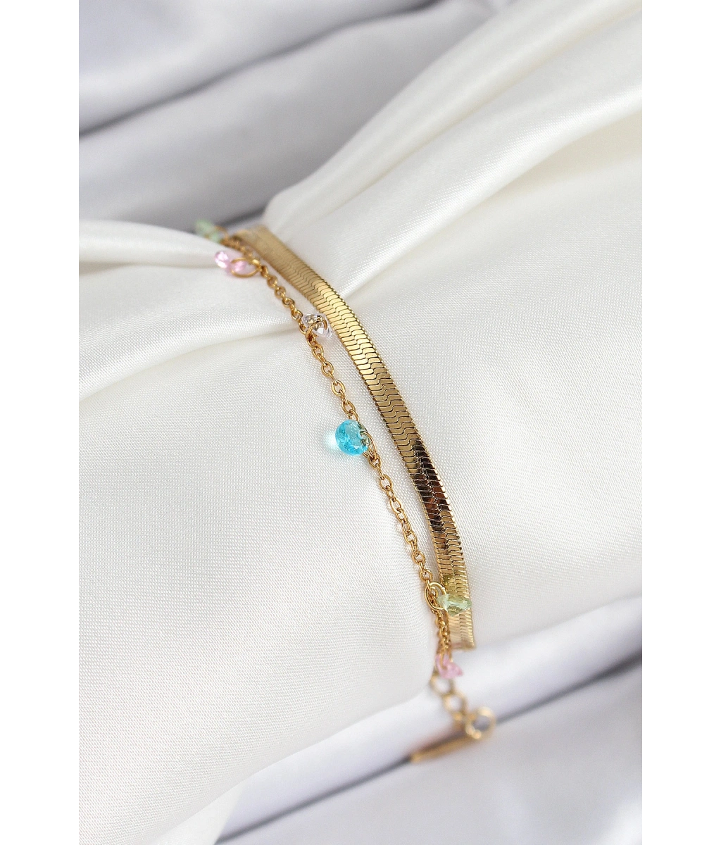Shoecide 316l Çelik Gold Renk Karışık Renkli Kristal Taşlı 2'li Kadın Bileklik