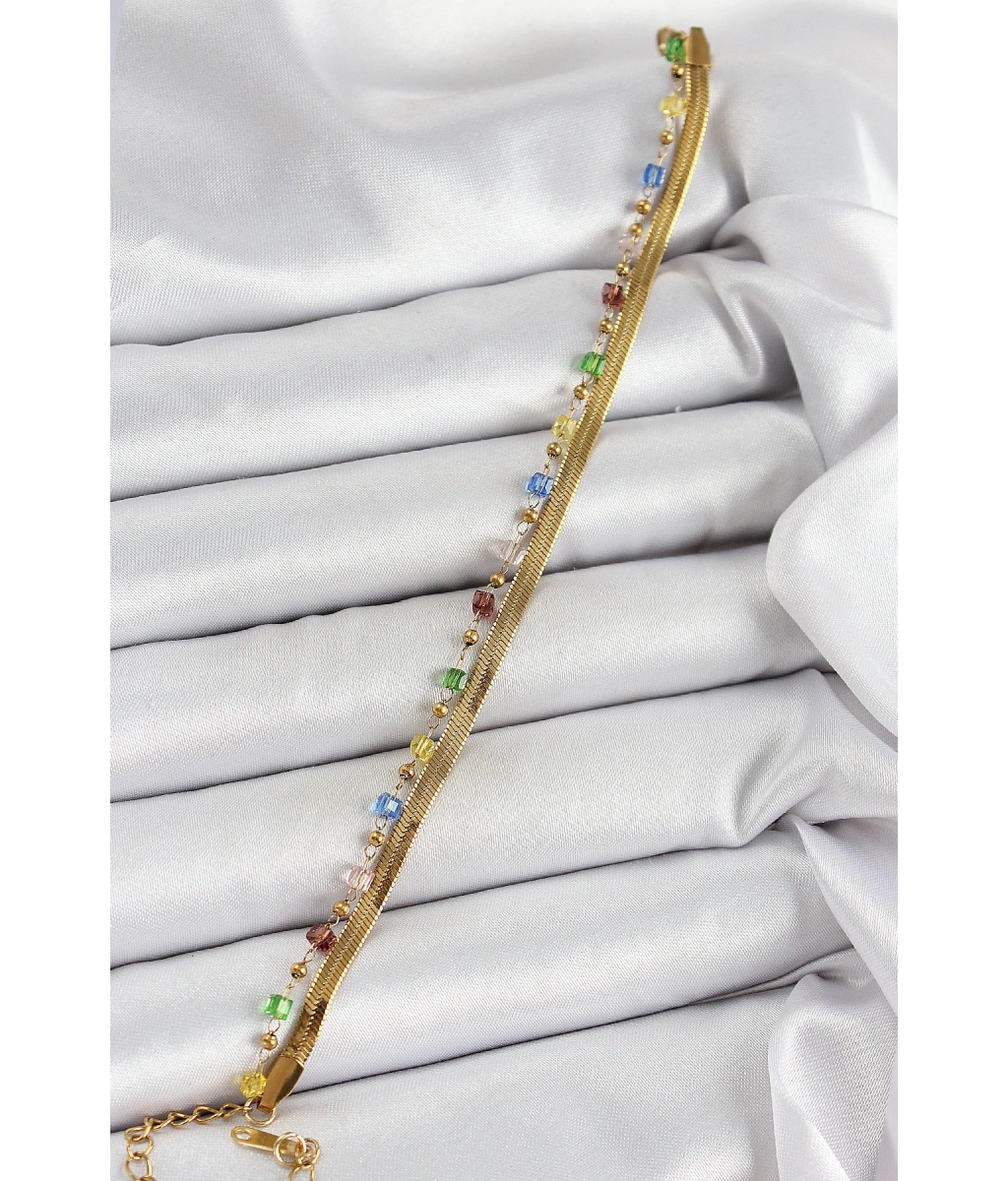 Shoecide 316l Çelik Gold Renk Karışık Renkli Kristal Taşlı Kadın Bileklik