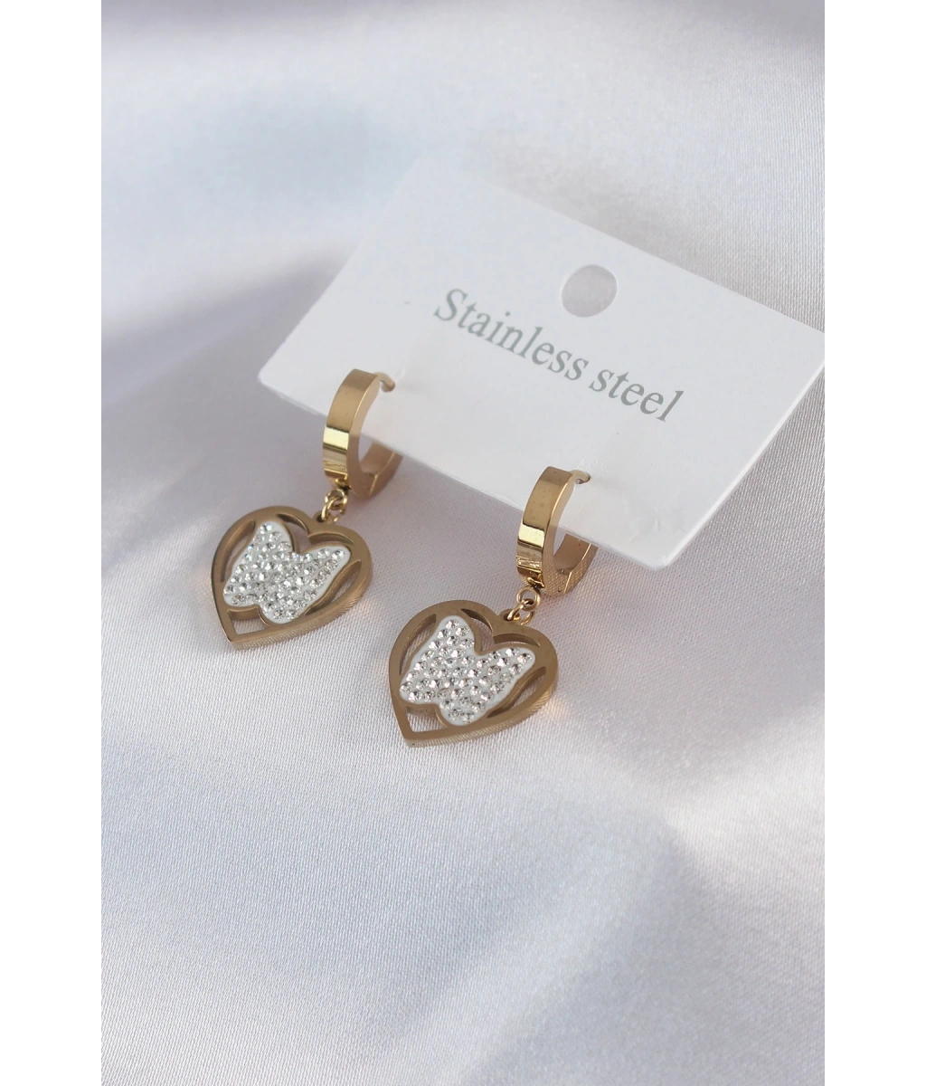 Shoecide 316l Çelik Gold Renk Zirkon Taşlı Kalp Model Kadın Küpe Seti
