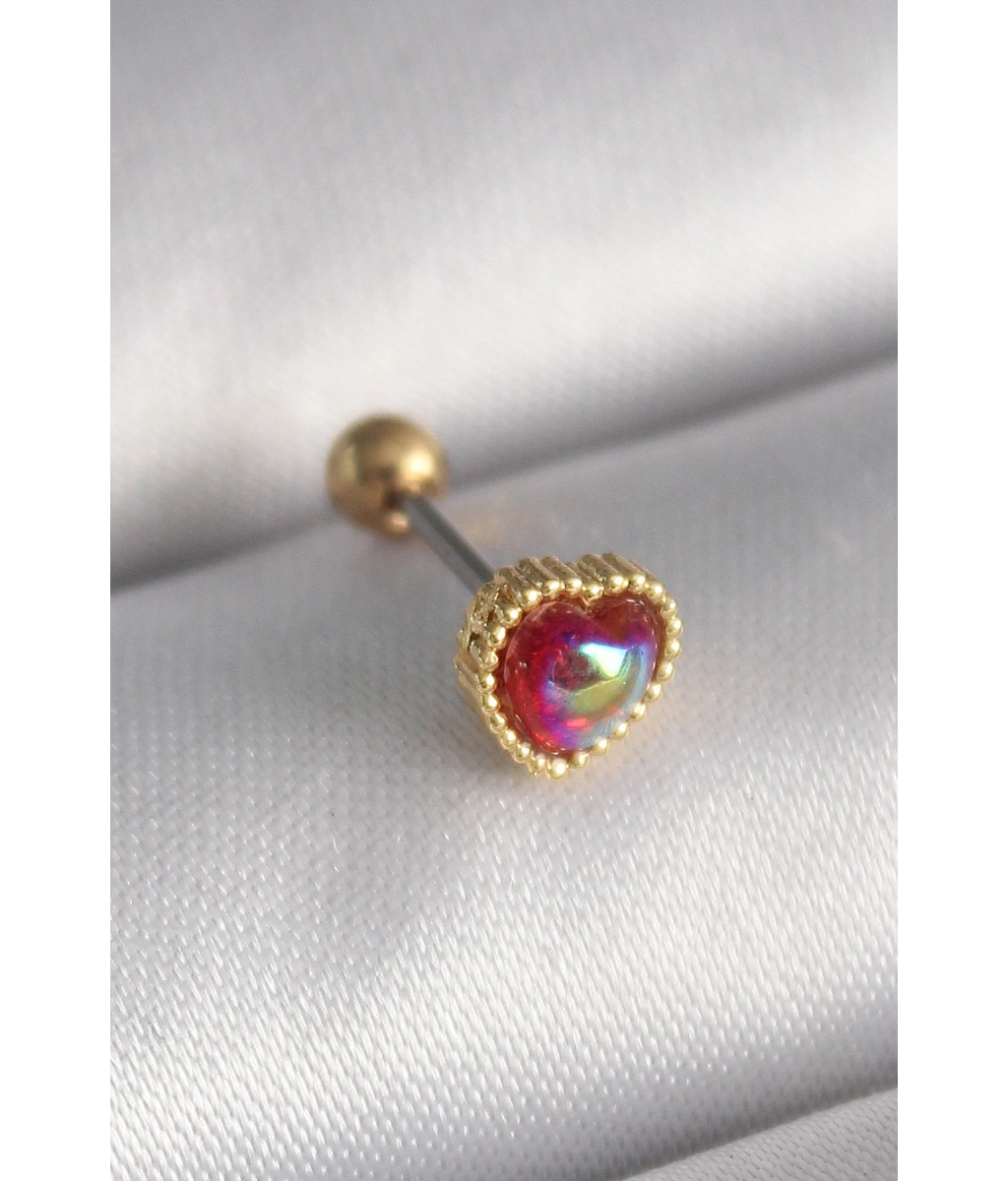 Shoecide 316l Çelik Gold Renk Kırmızı Mineli Kalp Tragus Piercing