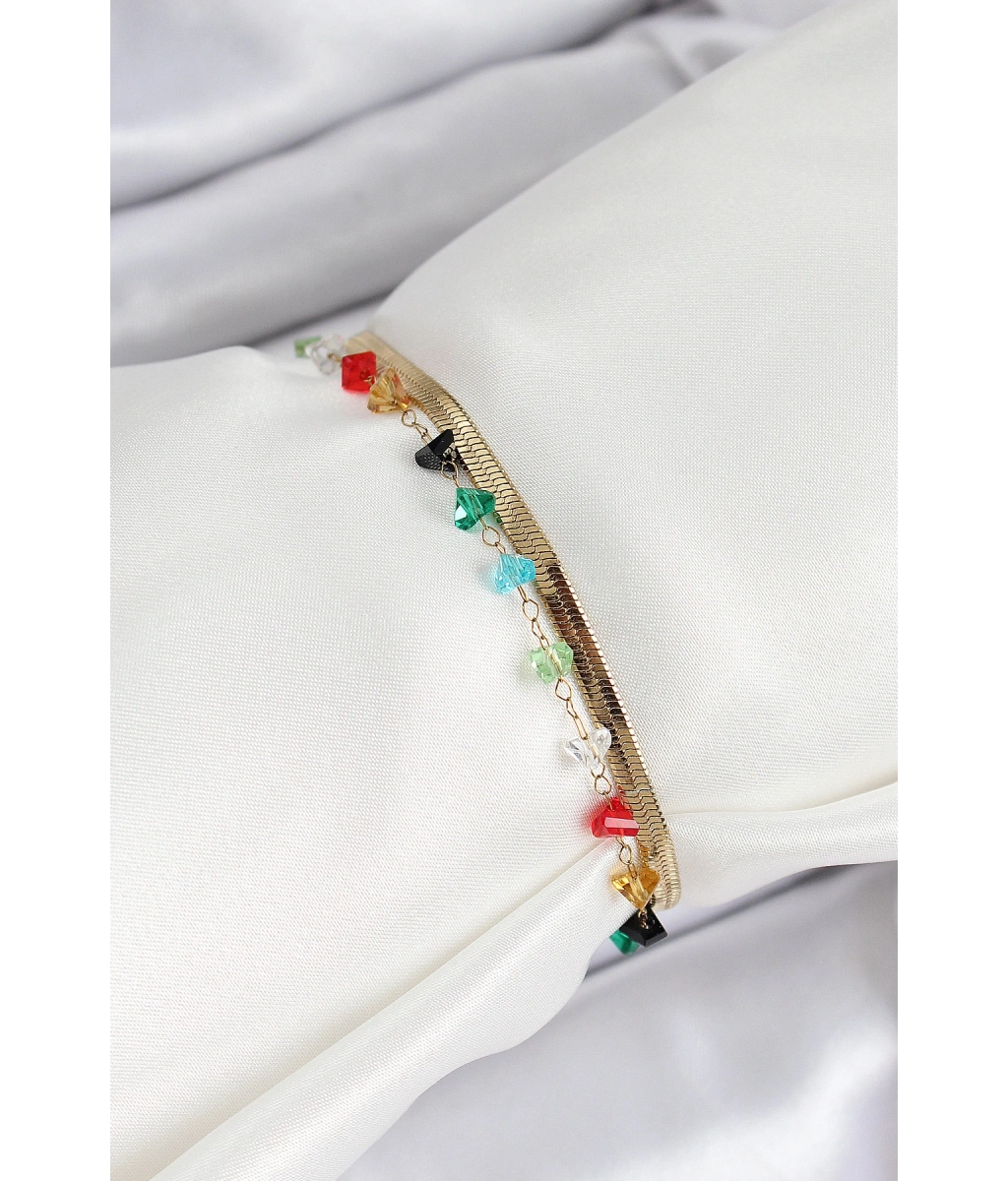 Shoecide 316l Çelik Gold Renk Kristal Karışık Renkli Taşlı 2'li Kadın Bileklik