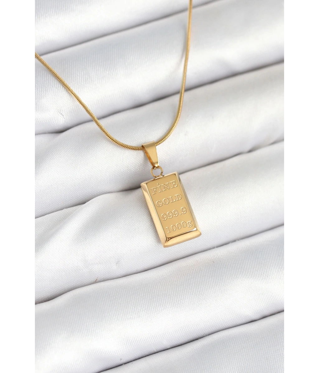 Shoecide 316l Çelik Gold Renk Külçe Altın Model Kolye